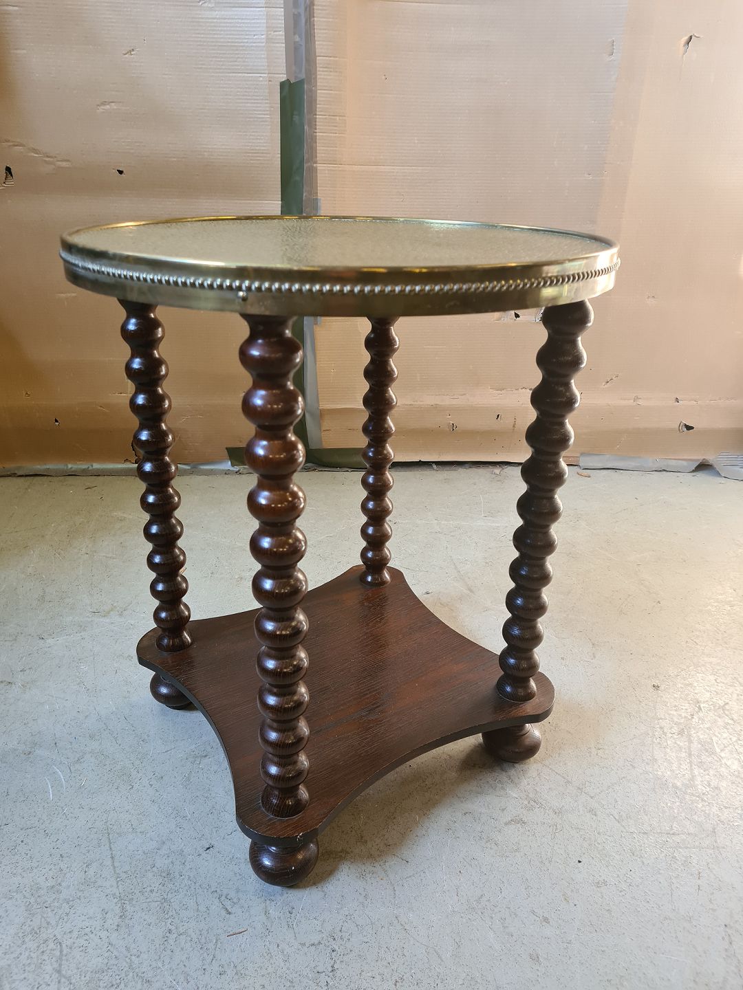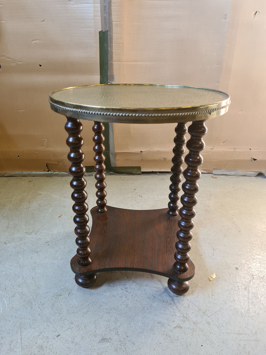 Lampebord i egetræ og messing, fra 1970erne.