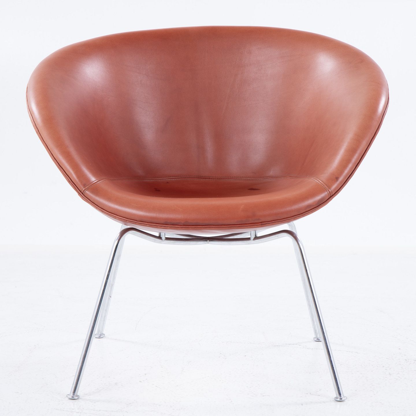 AJ 3318 - 'Gryden' lænestol i patineret rødt anilinlæder.