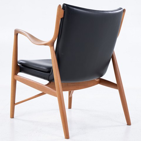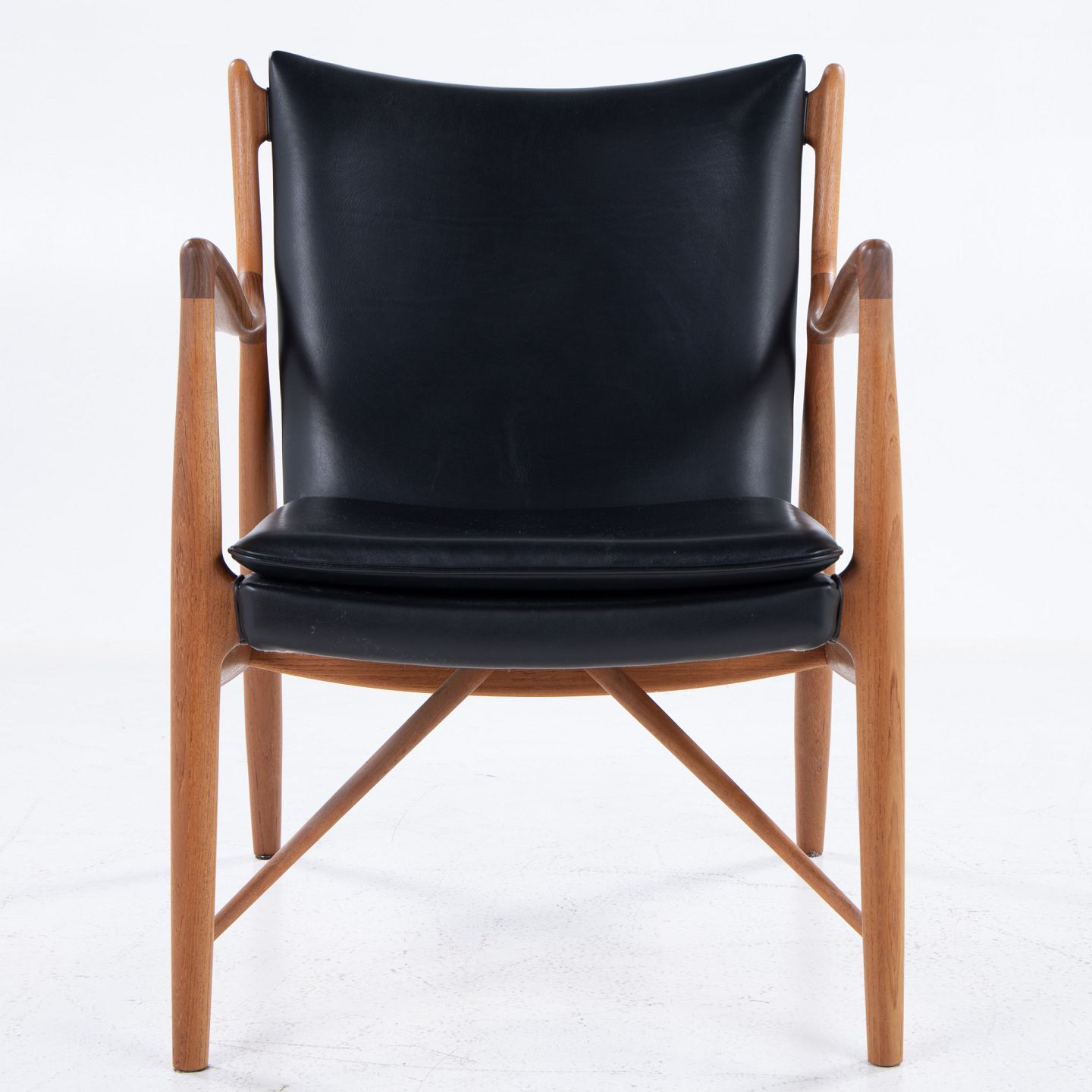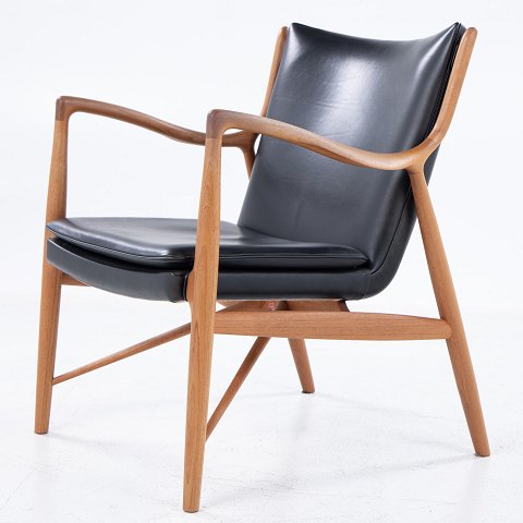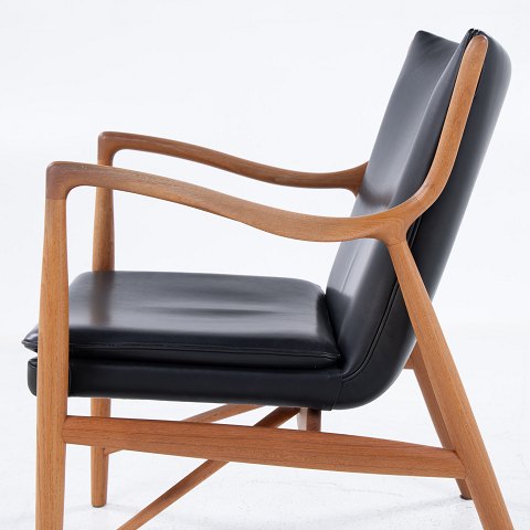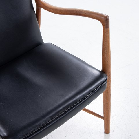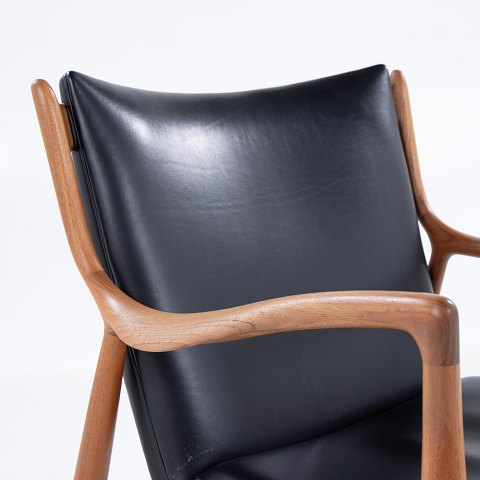 FJ 45 - Lænestol i teak og sort læder. Mærket af producent.