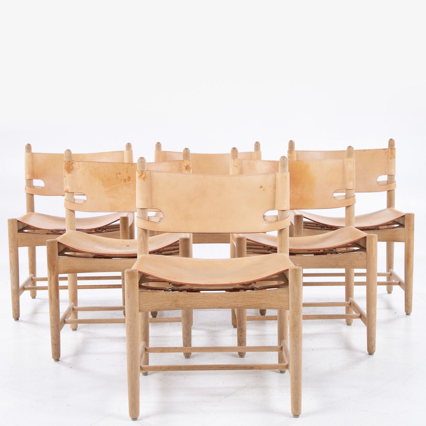 BM 3237 - Set of 6 ‘Hunting Chairs’ in oak and patinated full-grain leather.