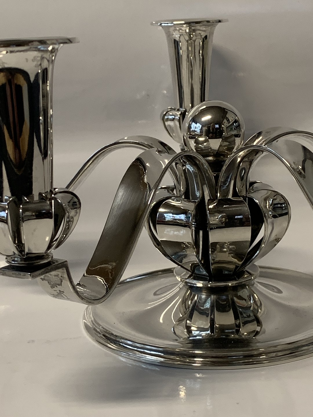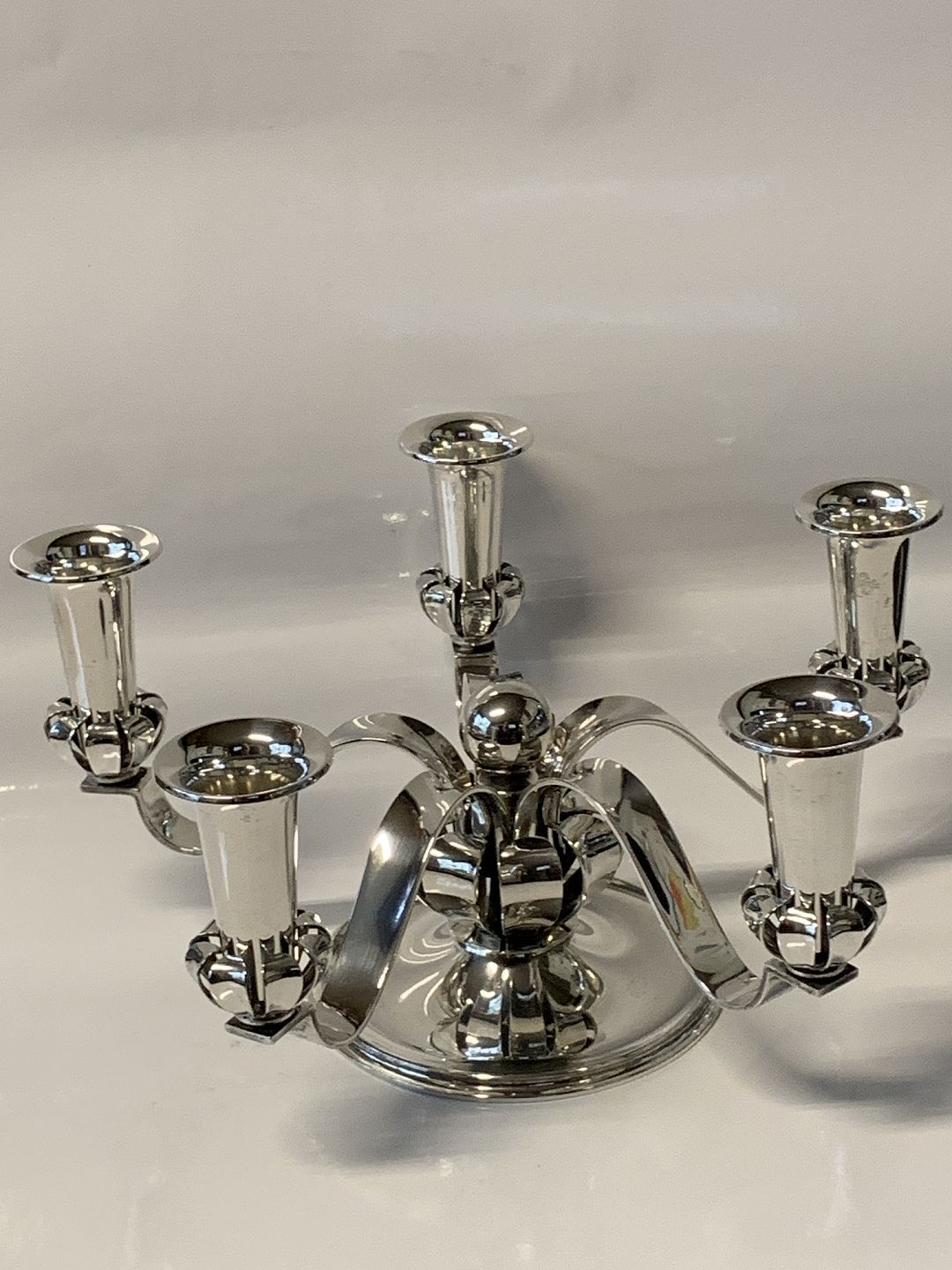 Art deco 5 armet lysestage tretårnet sølv.