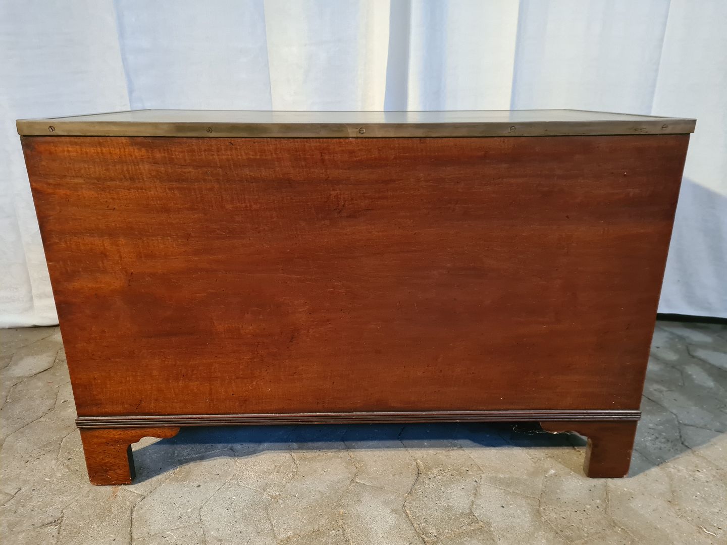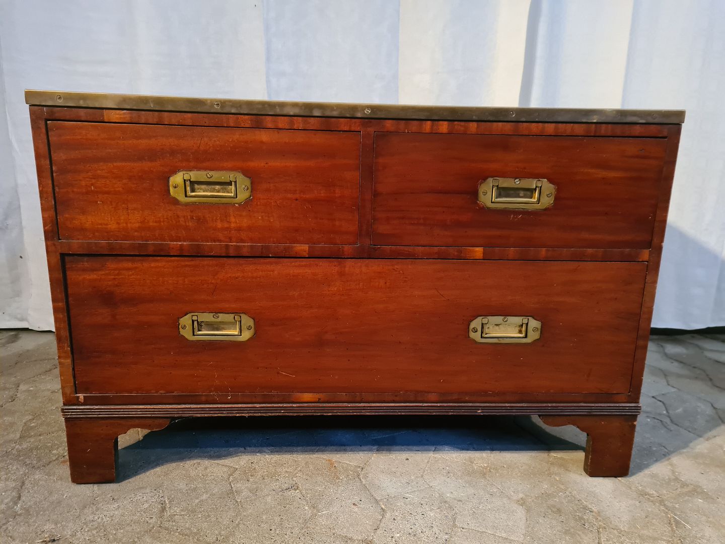 Kommode i fineret mahogni med kunstlæder indlæg, fra 1980erne.