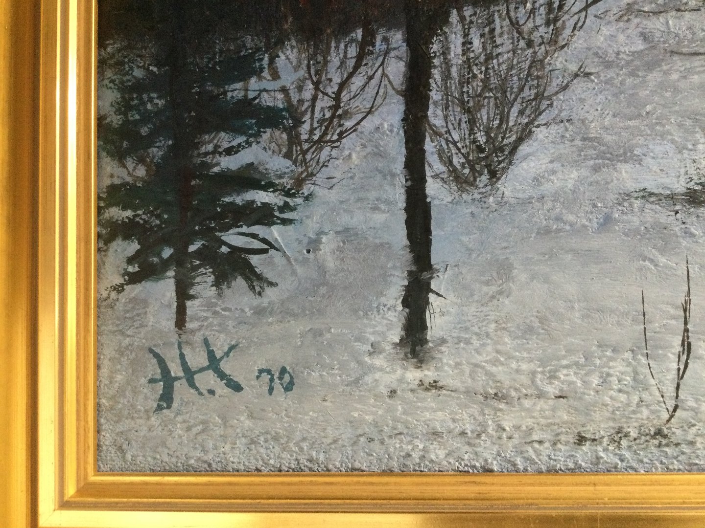 Maleri af Henning Therkildsen - Aftenparti fra Grønlandsk bygd.