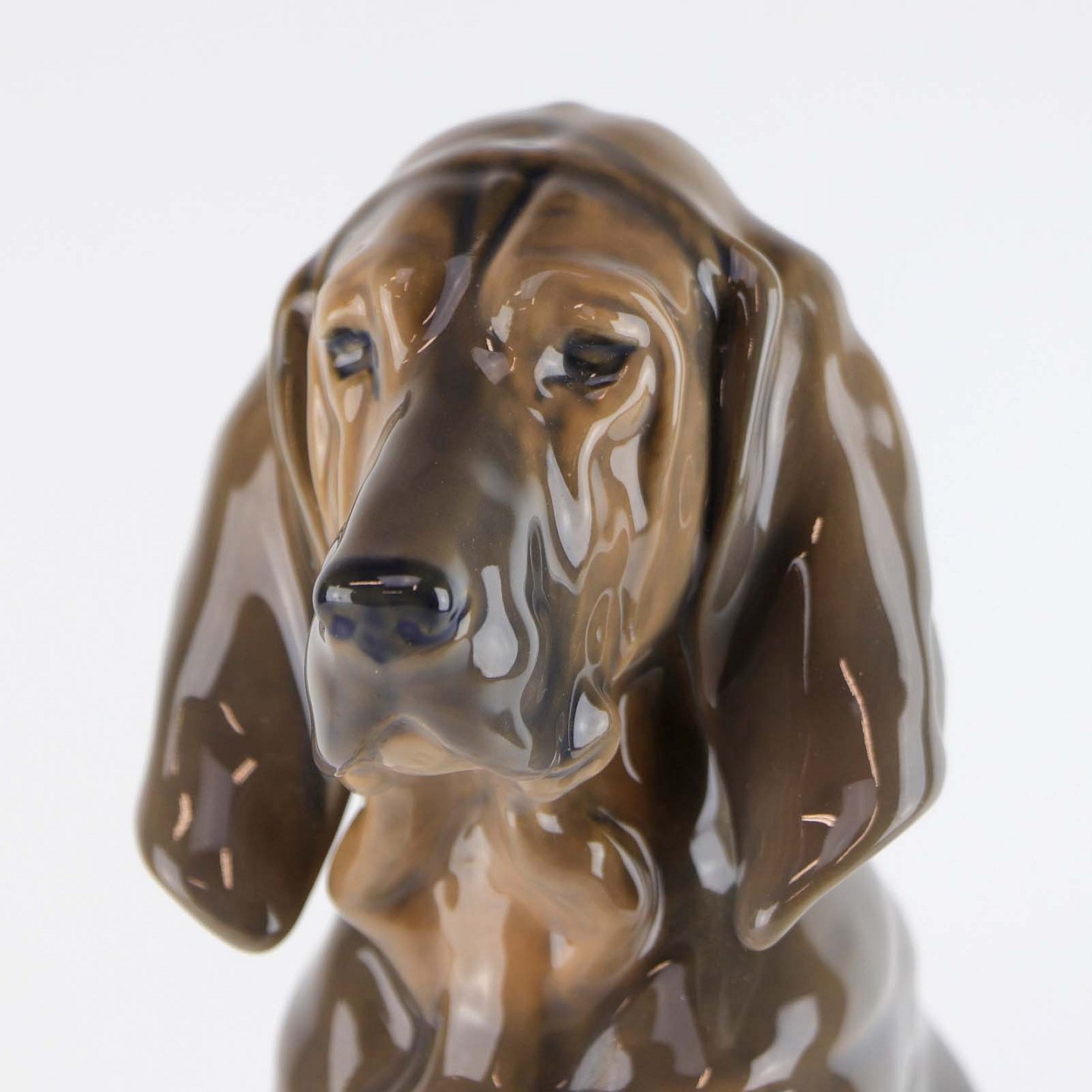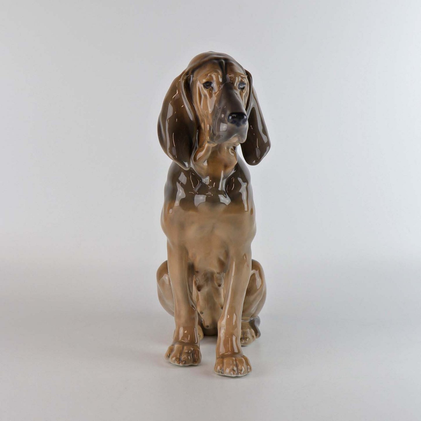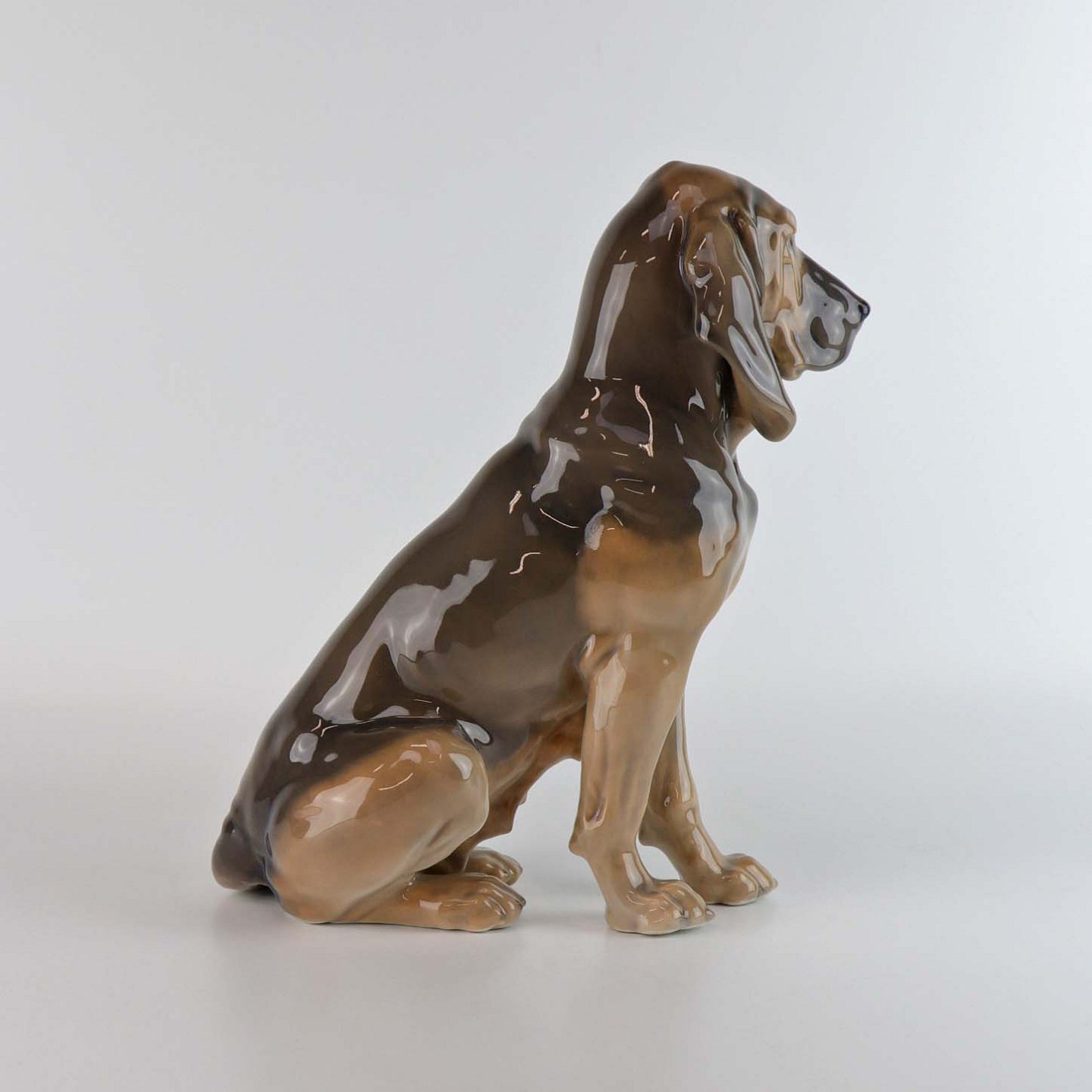 Kongelig figur i porcelæn med motiv af en siddende tæve af racen blodhund. Nr. 1322
