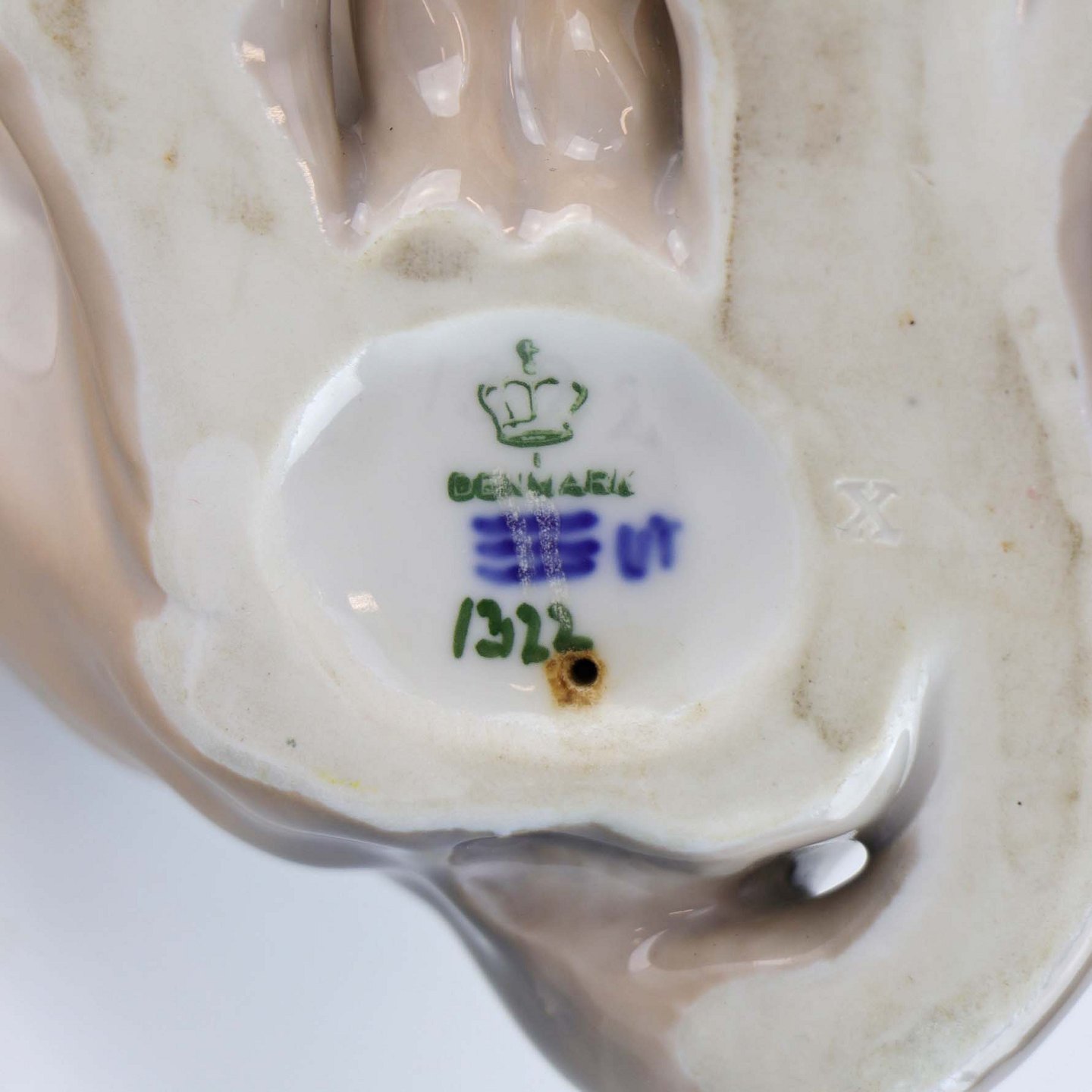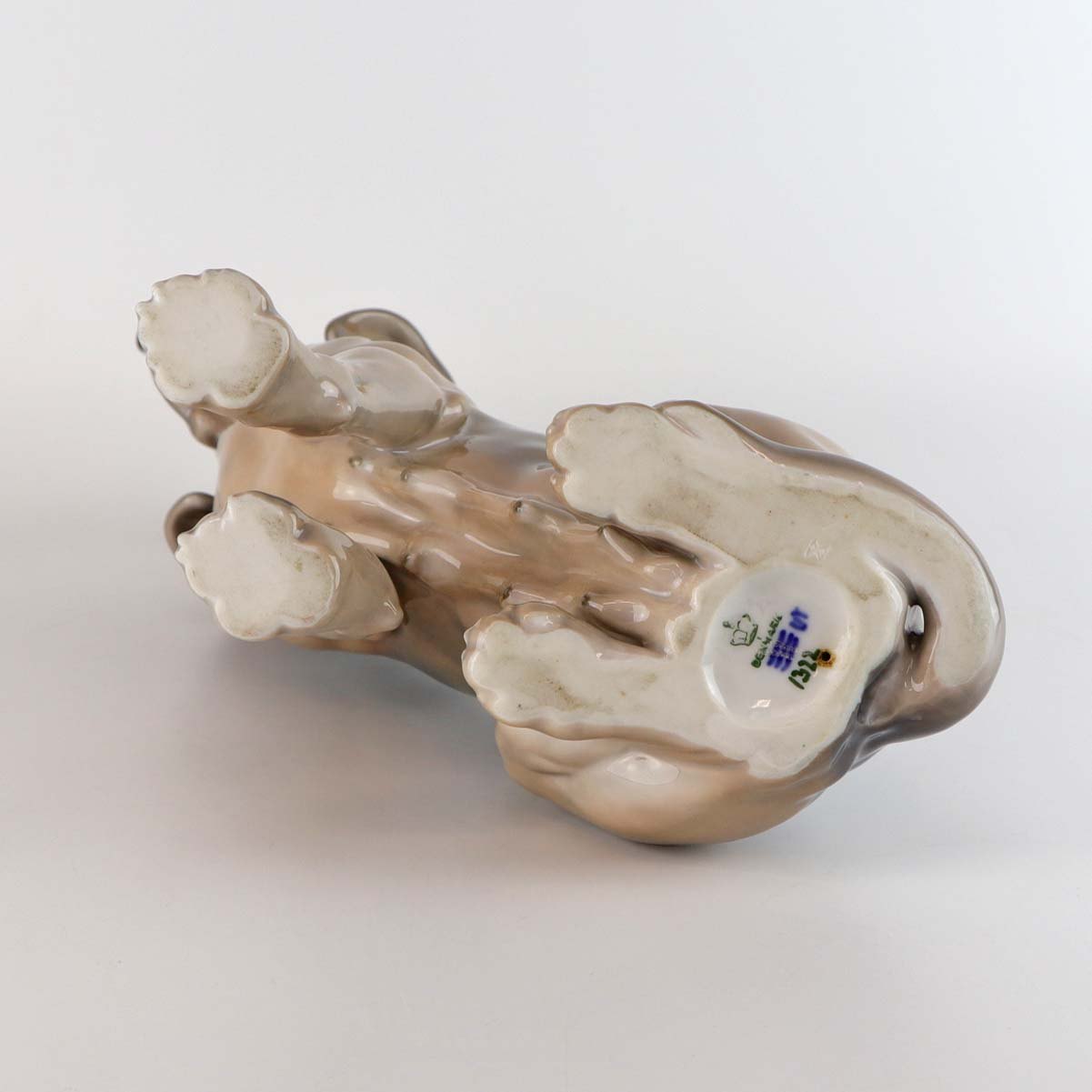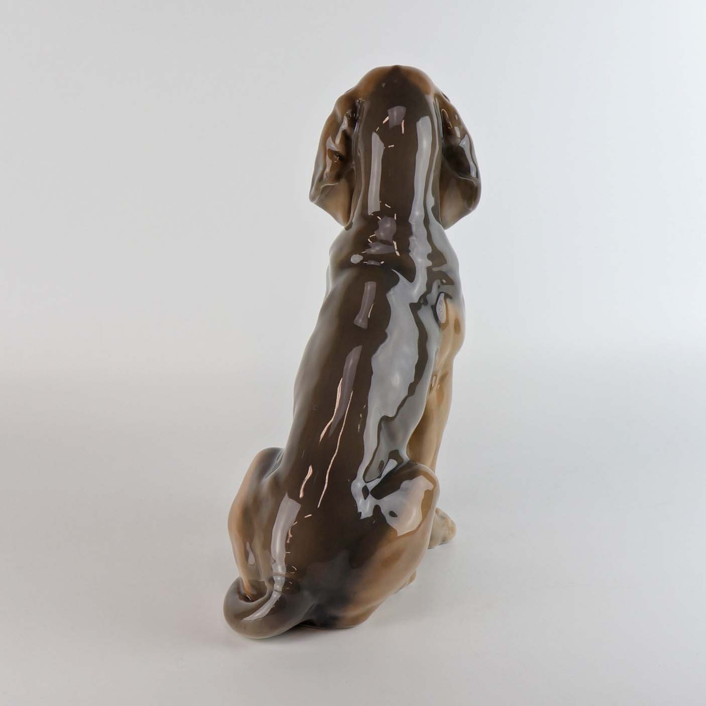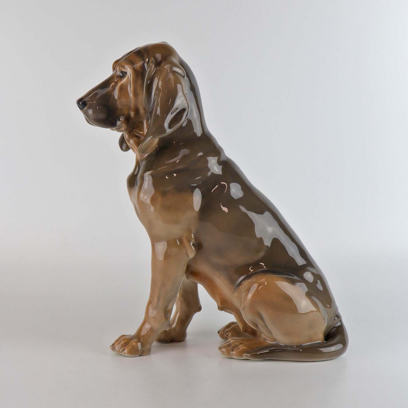 Kongelig figur i porcelæn med motiv af en siddende tæve af racen blodhund. Nr. 1322