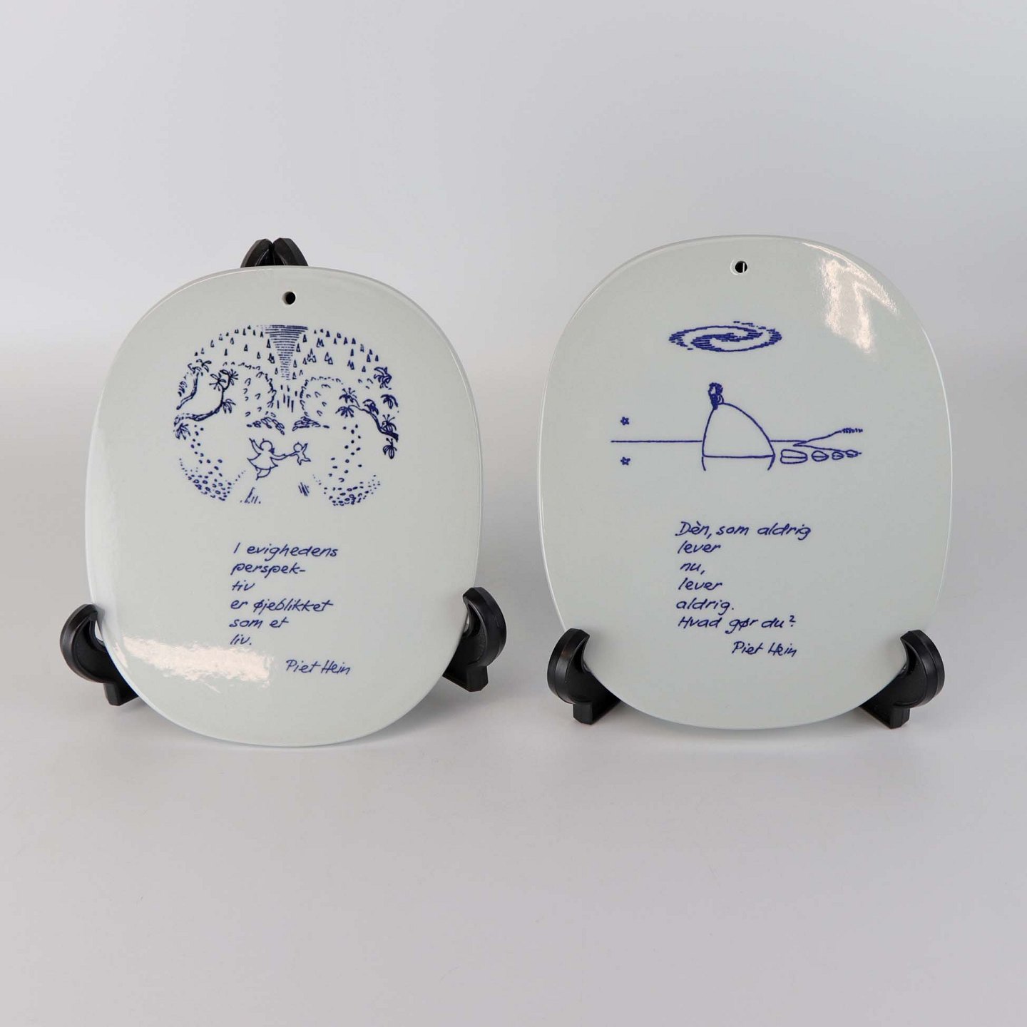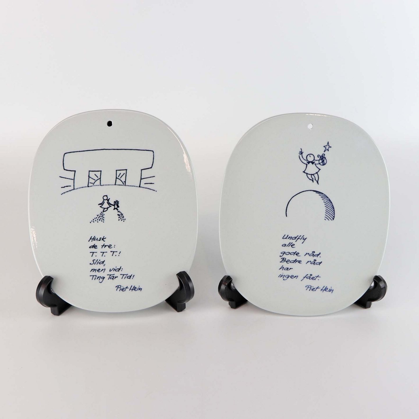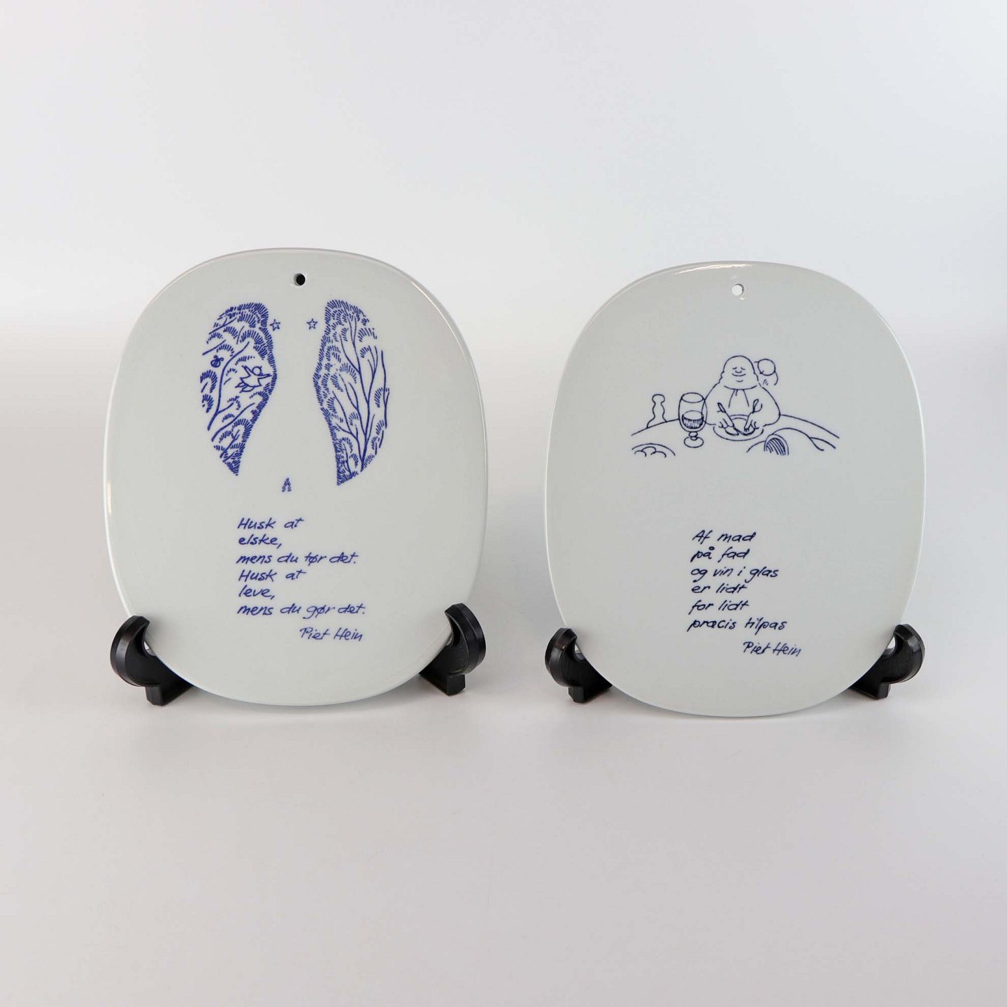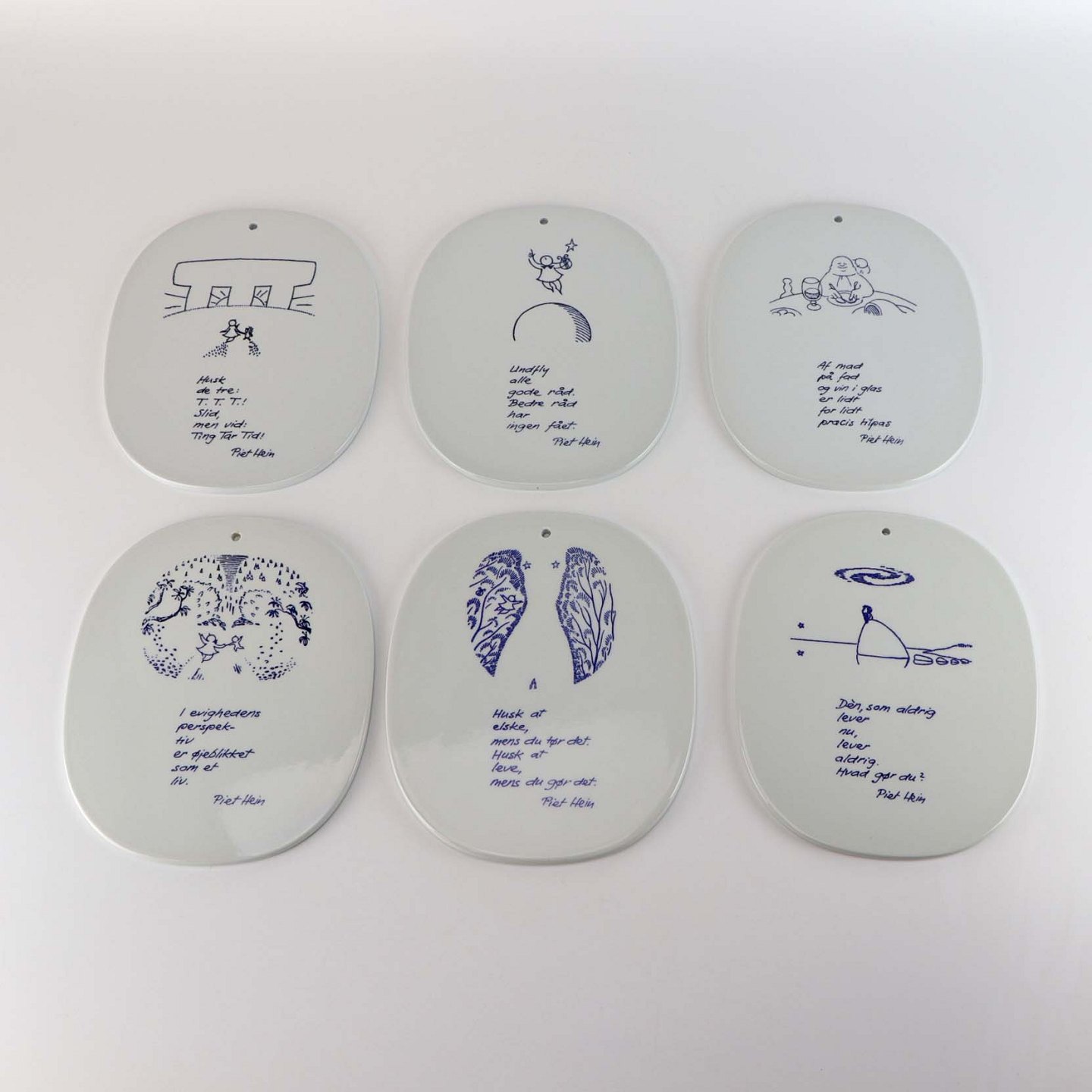 Kongelige platter i fajance med motiv og ordsprog af Piet Hein