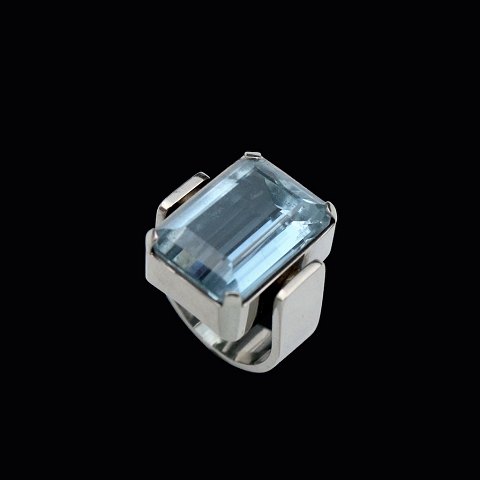 Boy Johansen. Ring i 18k hvidguld med aquamarine.