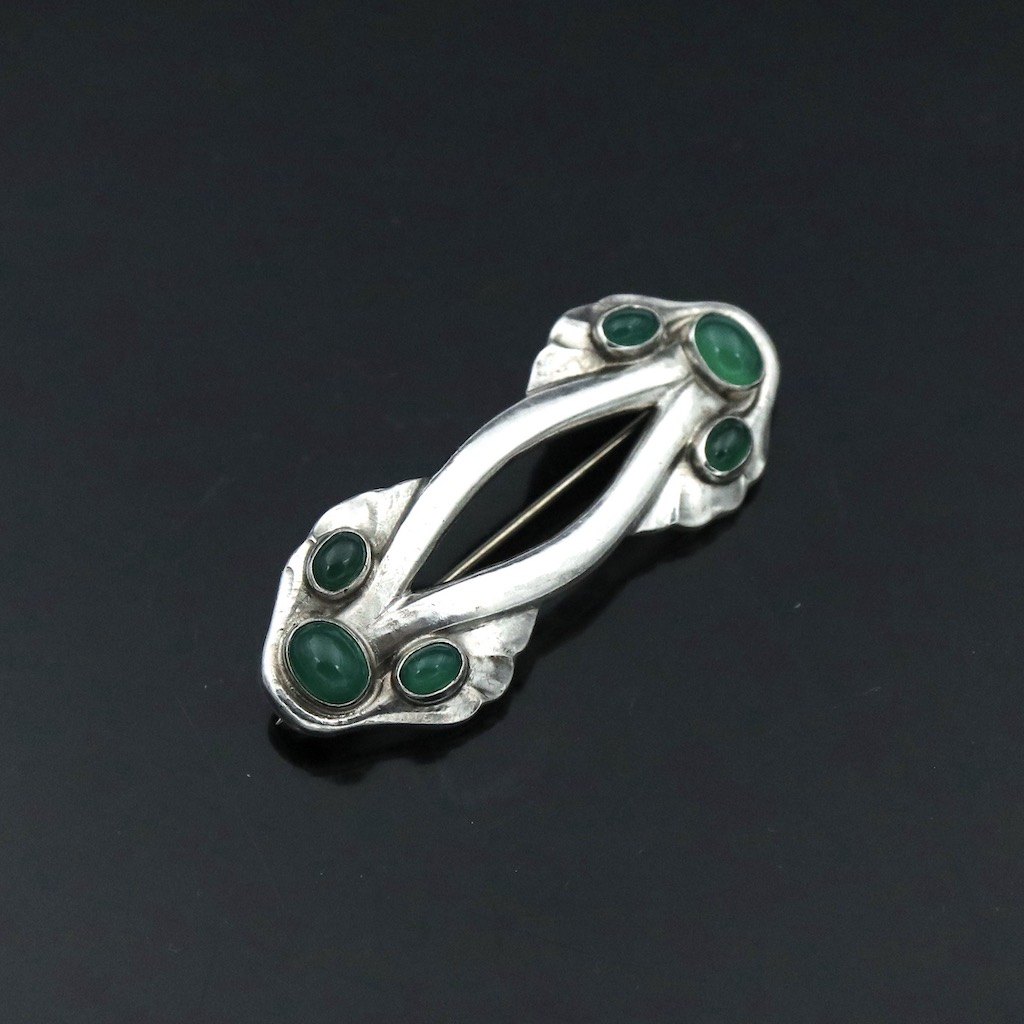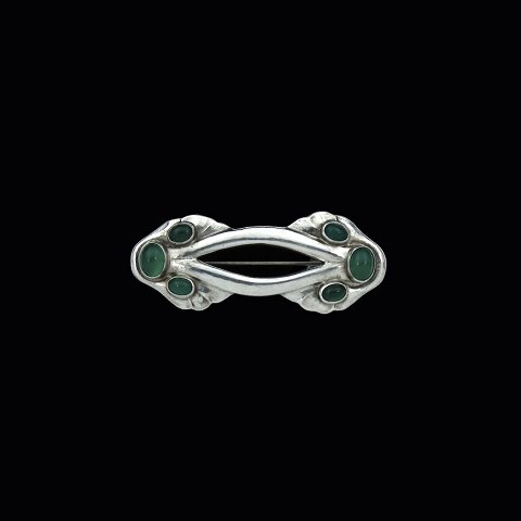 Georg Jensen. Broche i sterling sølv med grøn agat #86.
