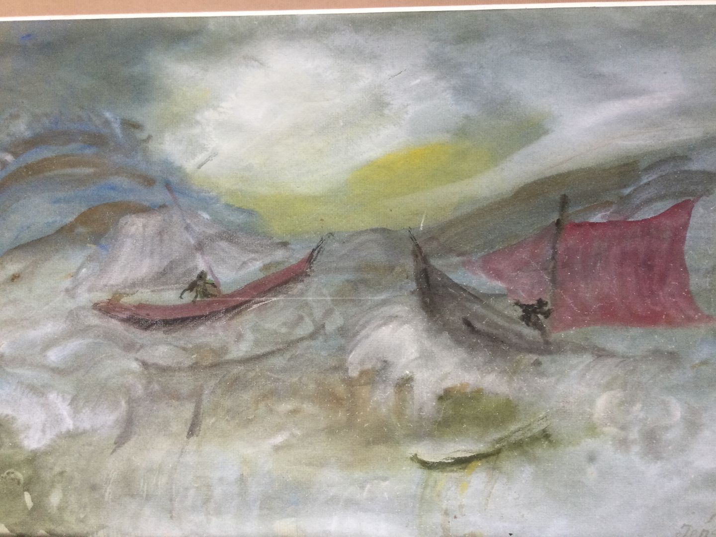 Maleri af Jens Nielsen - Både i storm 1951.