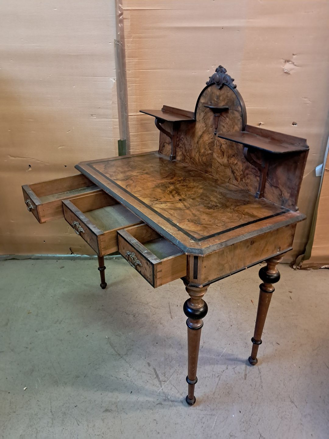 Dame skrivebord i fineret mahogni og bøgetræ, fra 1900erne.