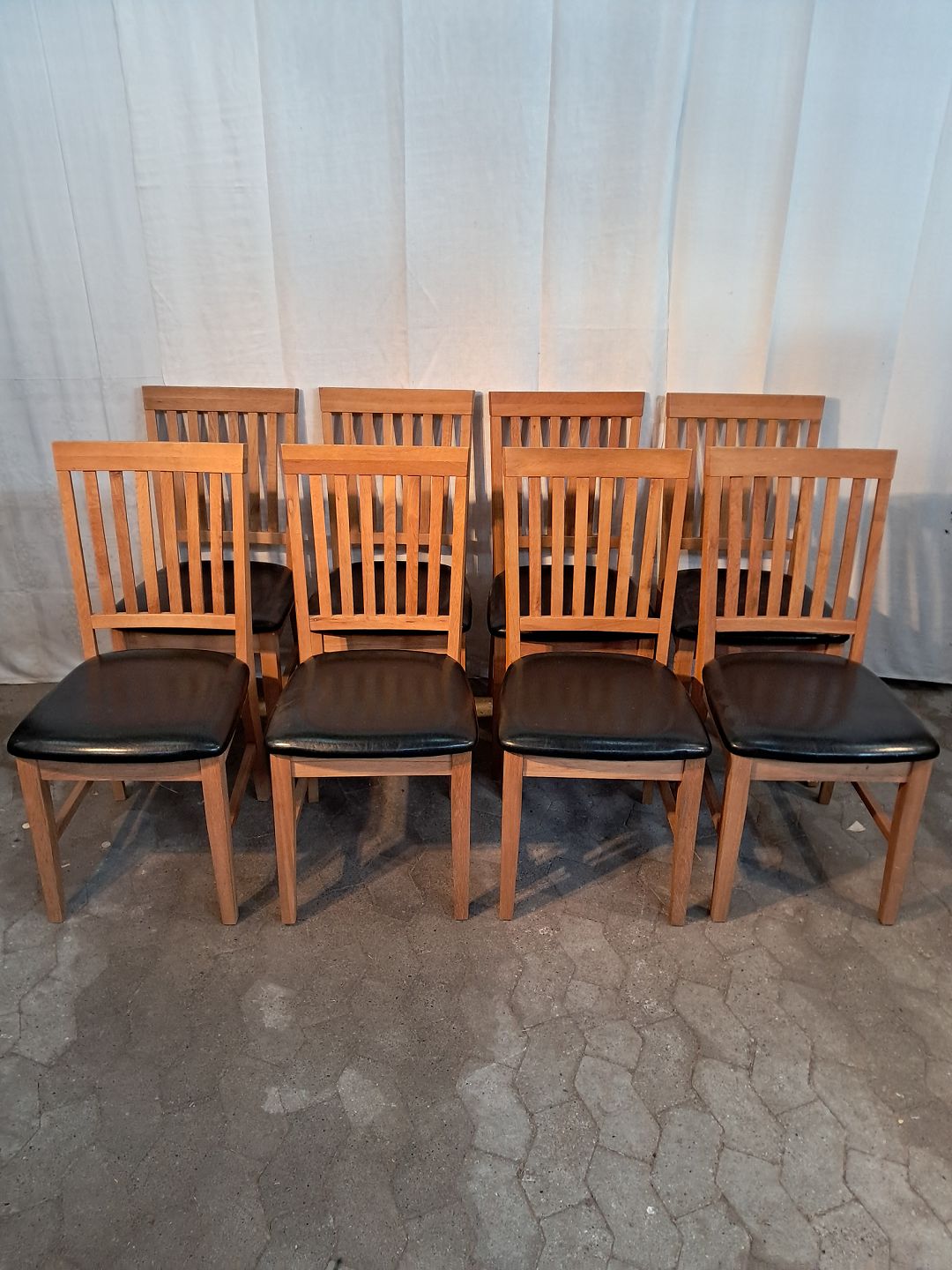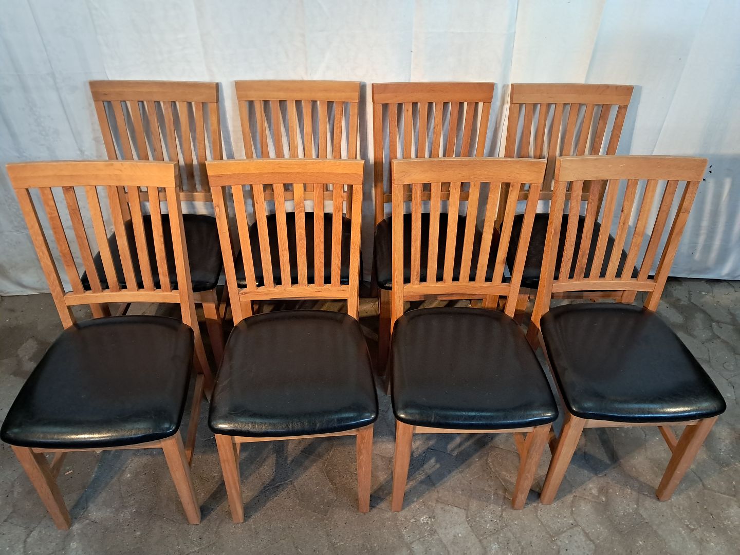 8 Stole i massivt egetræ med kunstlæder, 2010erne.