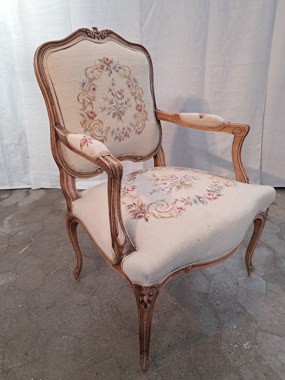 Rokokostol i massivt bøgetræ, fra 1950erne.