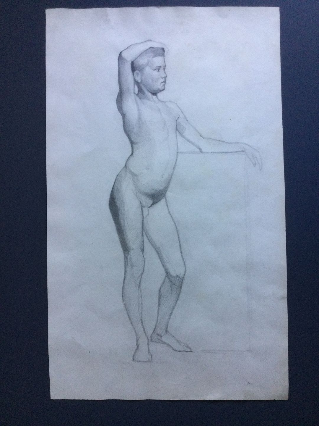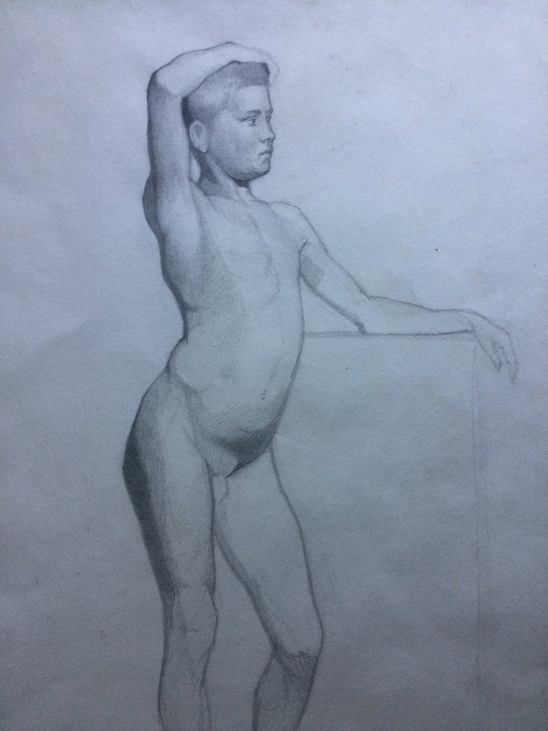 Akademi tegning af Emmery Rondahl - Nøgen ung mand.