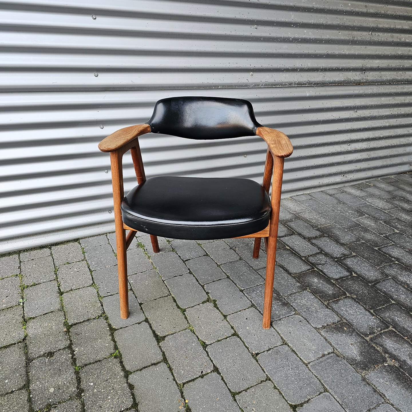Armstol med stel i teaktræ og letpolstret ryg og sæde betrukket med sort nappa