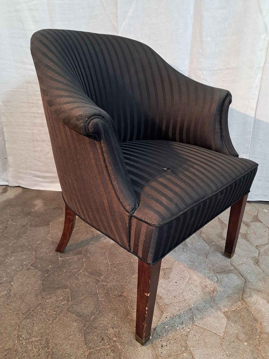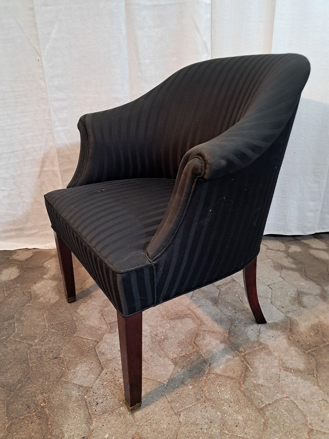 Overpolstret lænestol med mahogni ben, fra 1910erne.