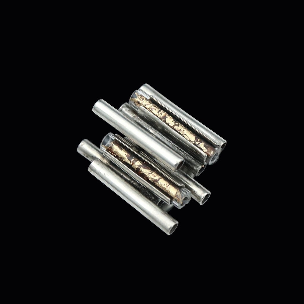 Flemming Knudsen. Ring i sterling sølv med plexi-glas og bladguld.