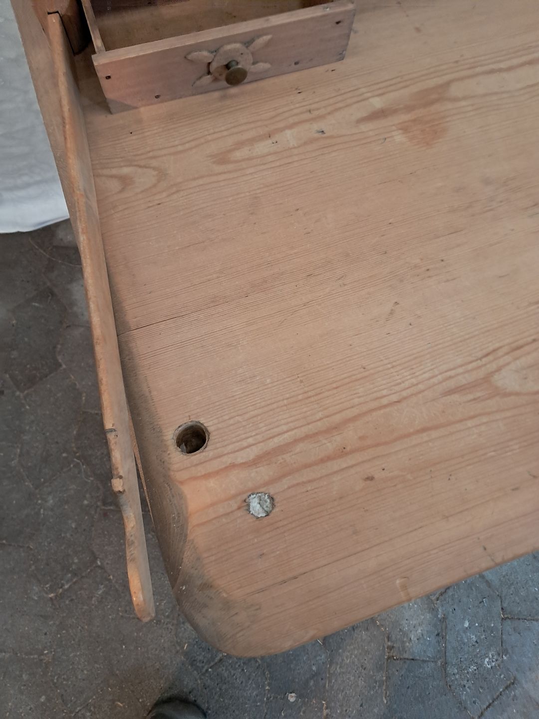 Skrivebord i massivt fyrretræ, fra 1900erne.