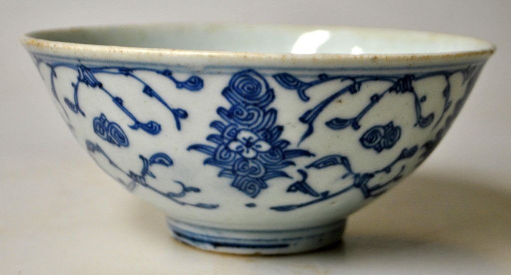 Chinese blue/white painted porcelain bowl, 19th century H: 7 cm. Diameter: 16 cm. Signed.