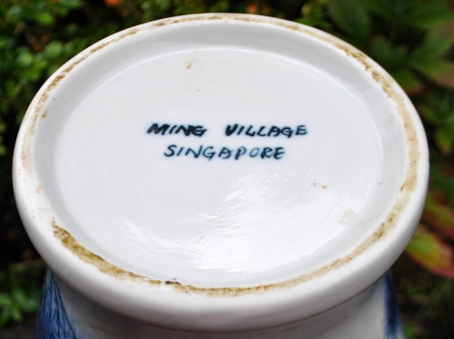Ming village blå/hvid porcelæns gulvvase, 20. årh. Singapore.