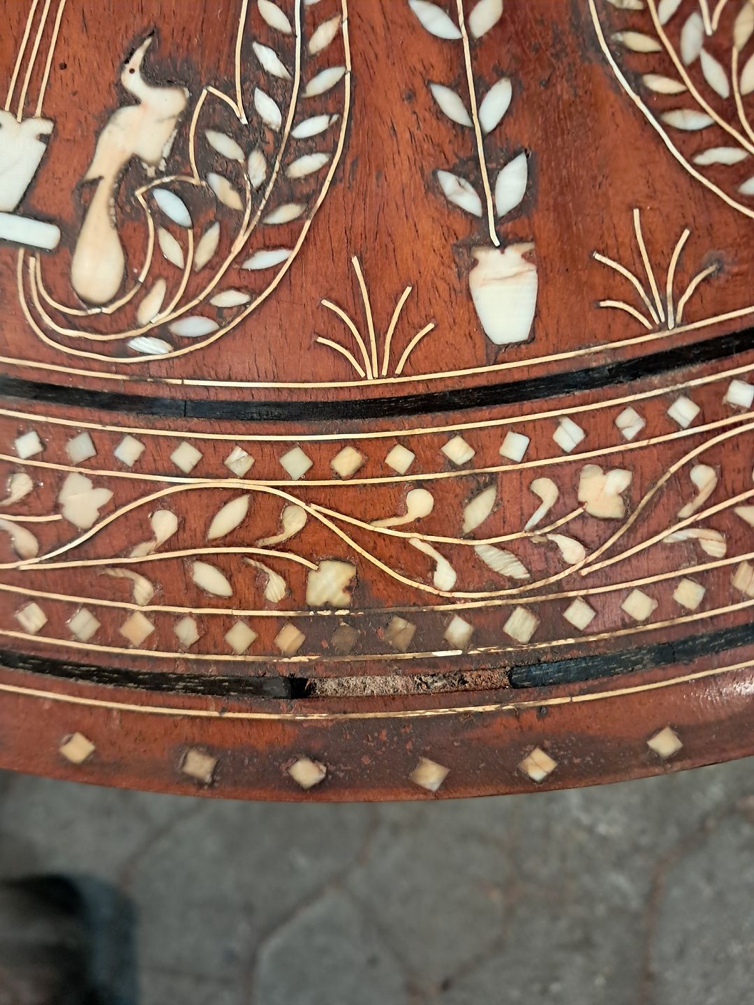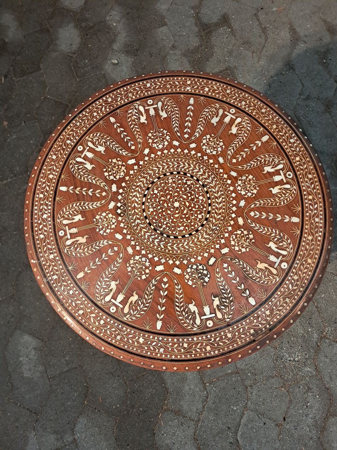 Pyntebord i massivt træ med indlæg, fra 1980erne.