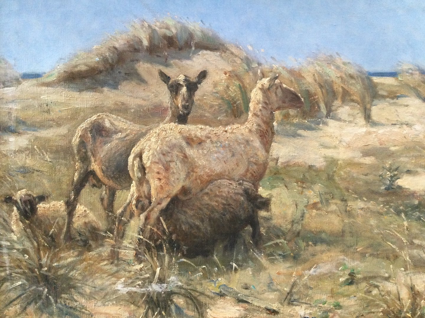 Maleri af Valdemar Irminger - Klitparti med græssende får.