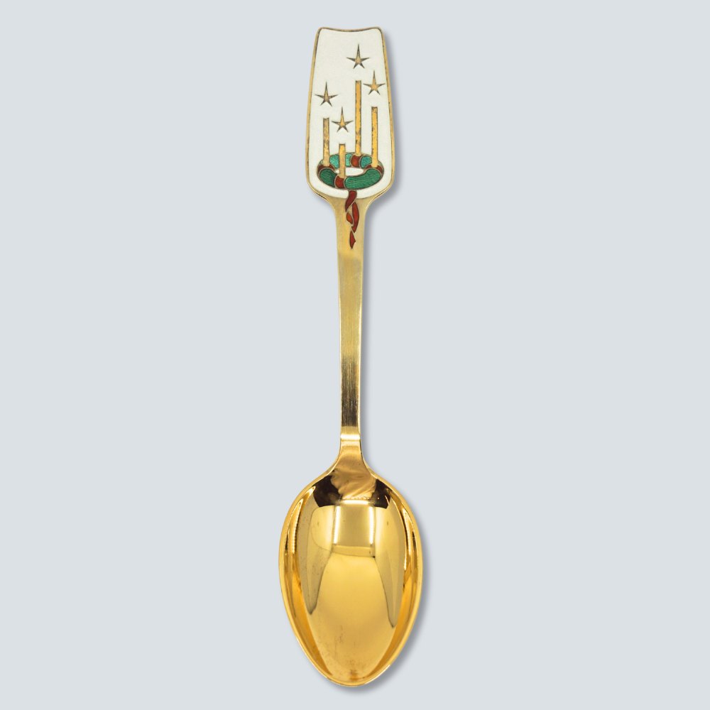 Mogens Nilsson for A. Michelsen; Juleske 1949. Juleske af forgyldt sterling sølv med emalje.