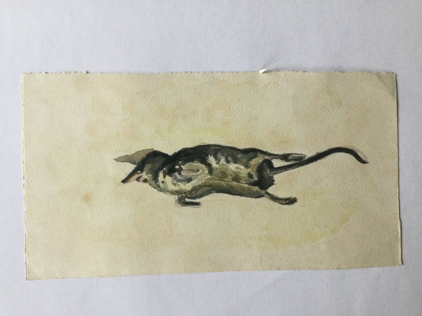 Akvarel af Torkil Norél - Død Muldvarp.