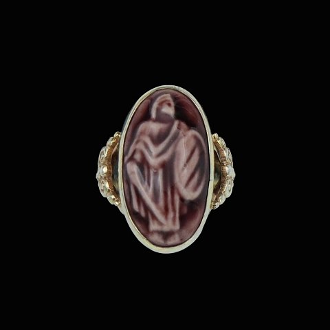 Jais Nielsen 1885-1961. Ring i forgyldt sterling sølv med keramisk relief.