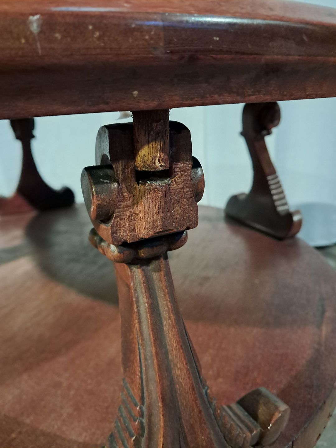 Det har brugsspor og defekt finer og en lille skade. (se foto)