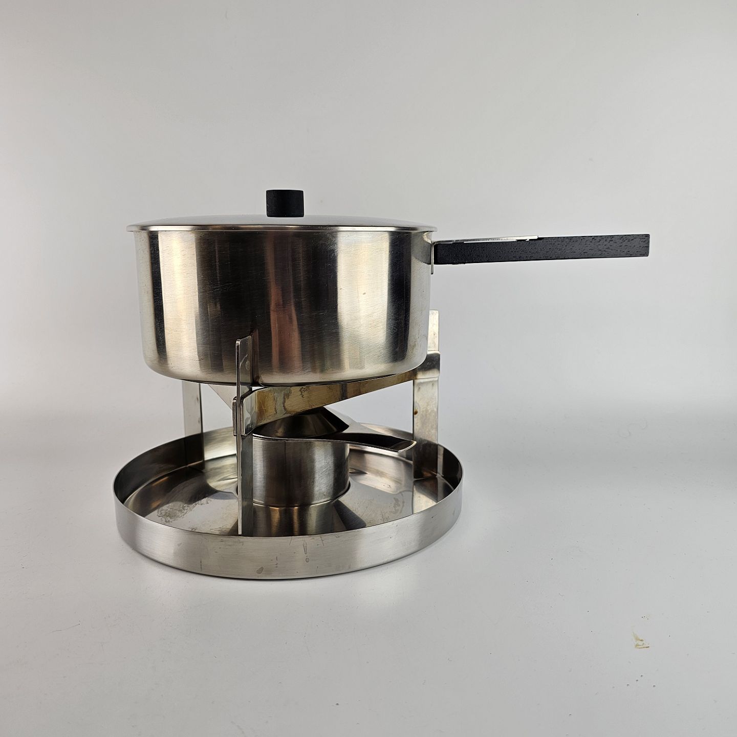 Stelton fonduesæt i rustfrit stål som indeholder med bakke, stander, brænder, gryde og låg. Model 500/2