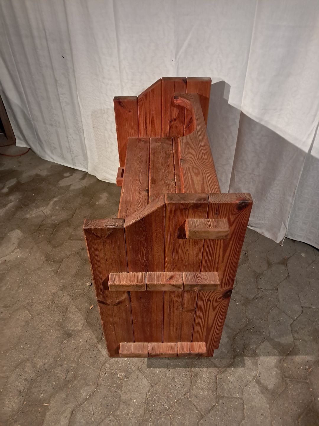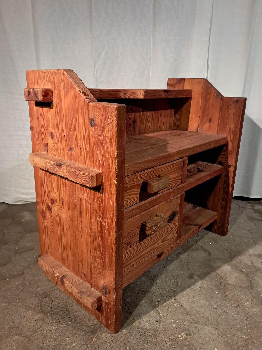 Telefonbænk i massivt fyrretræ, fra 1980erne.