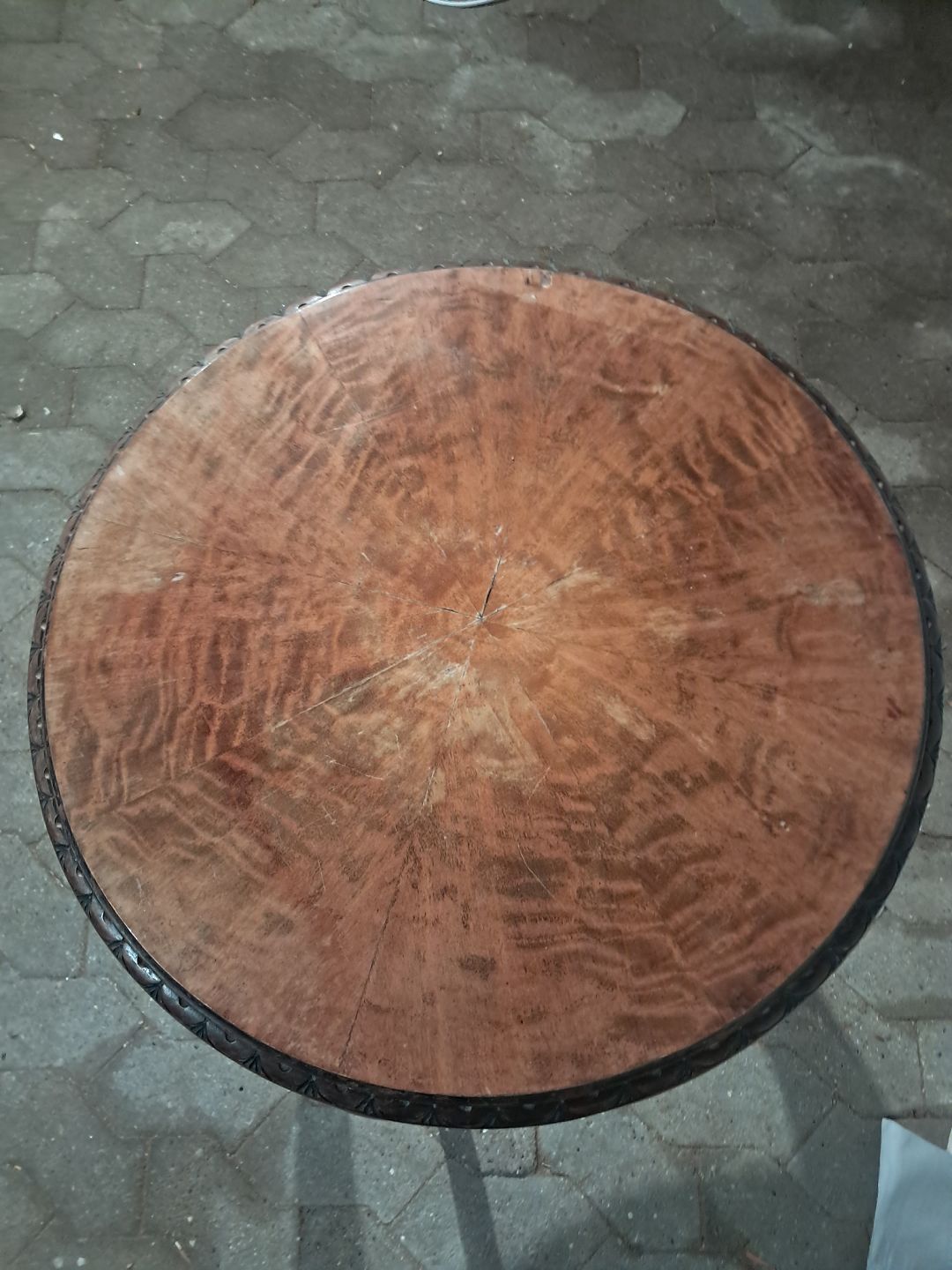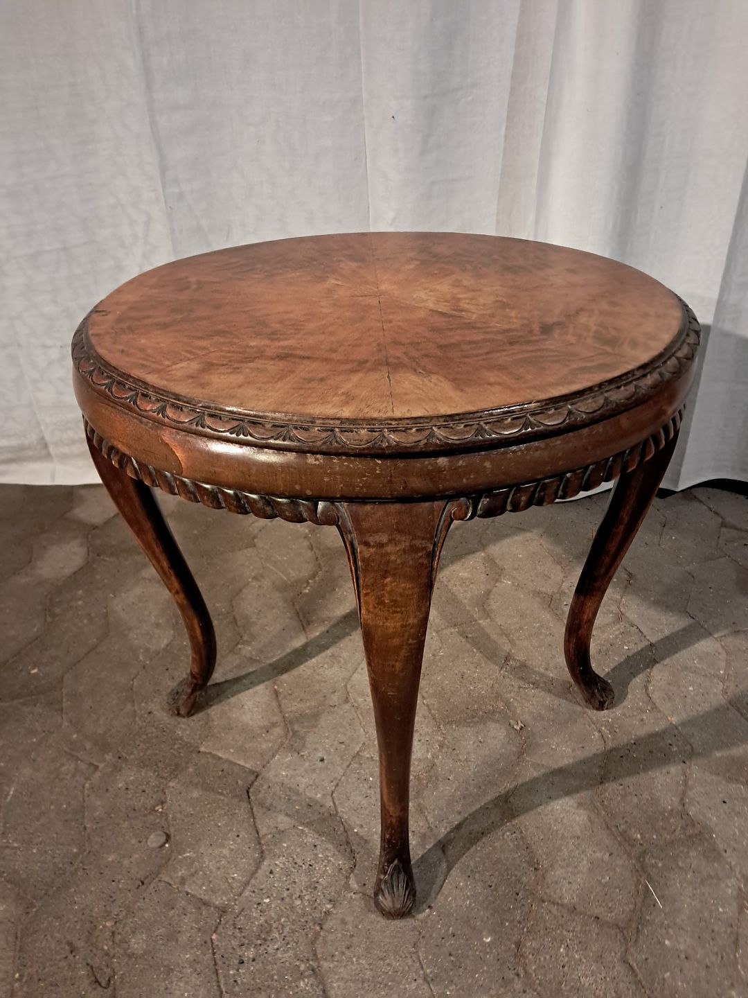 Rundt bord i fineret og massivt birketræ, fra 1920erne.