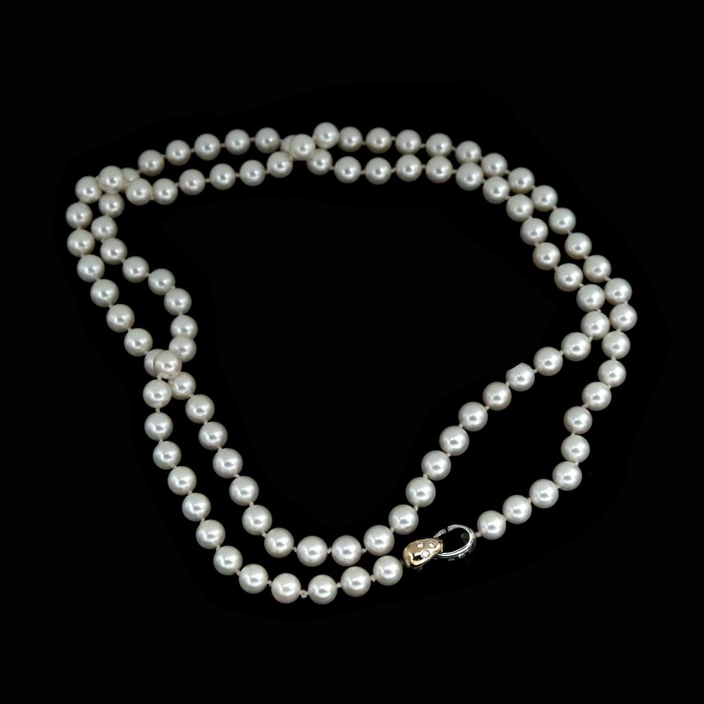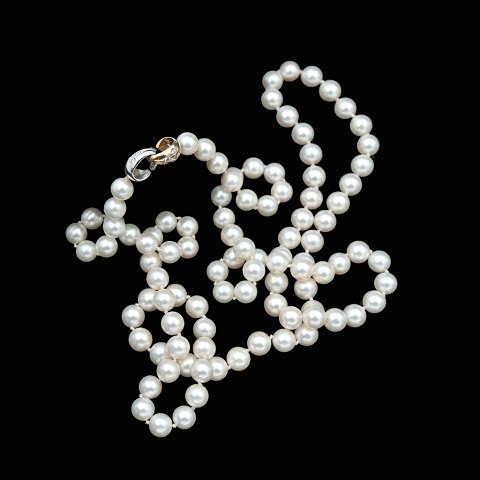 Georg Jensen. Unika perlekæde med lås i 18k hvid- og gulguld med brillanter.