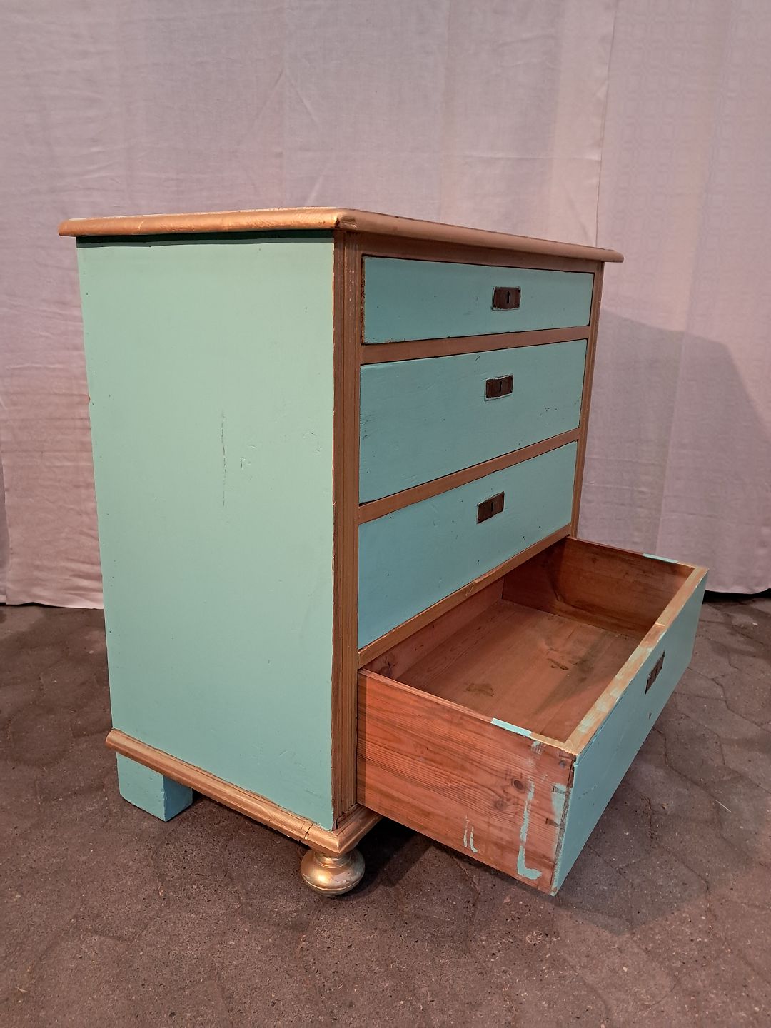 Malet kommode i massivt fyrretræ, fra 1910erne.