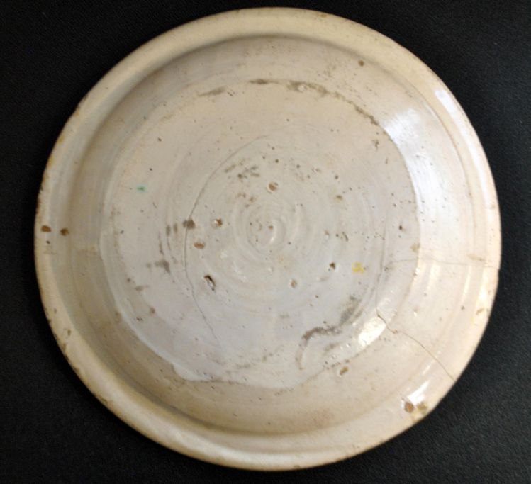 Spansk fajance, 18./19. årh. Med gule, grønne og blå dekorationer. Dia.: 28 cm.