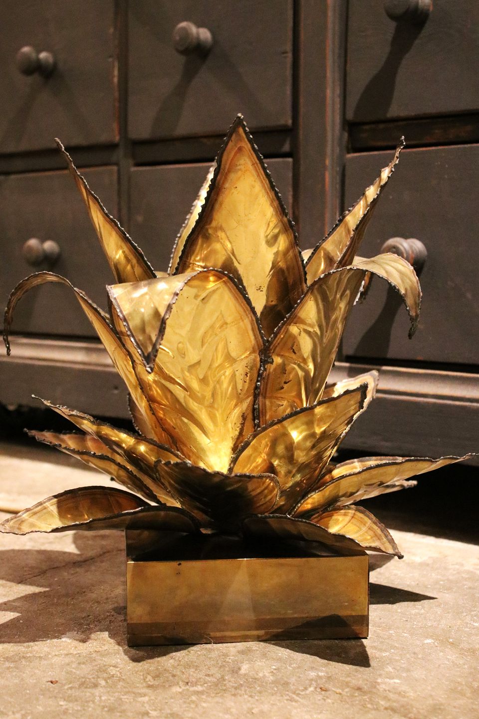 Skulpturel , dekorativ Maison Jansen Aloe Vera Bordlampe i messing 60'erne...