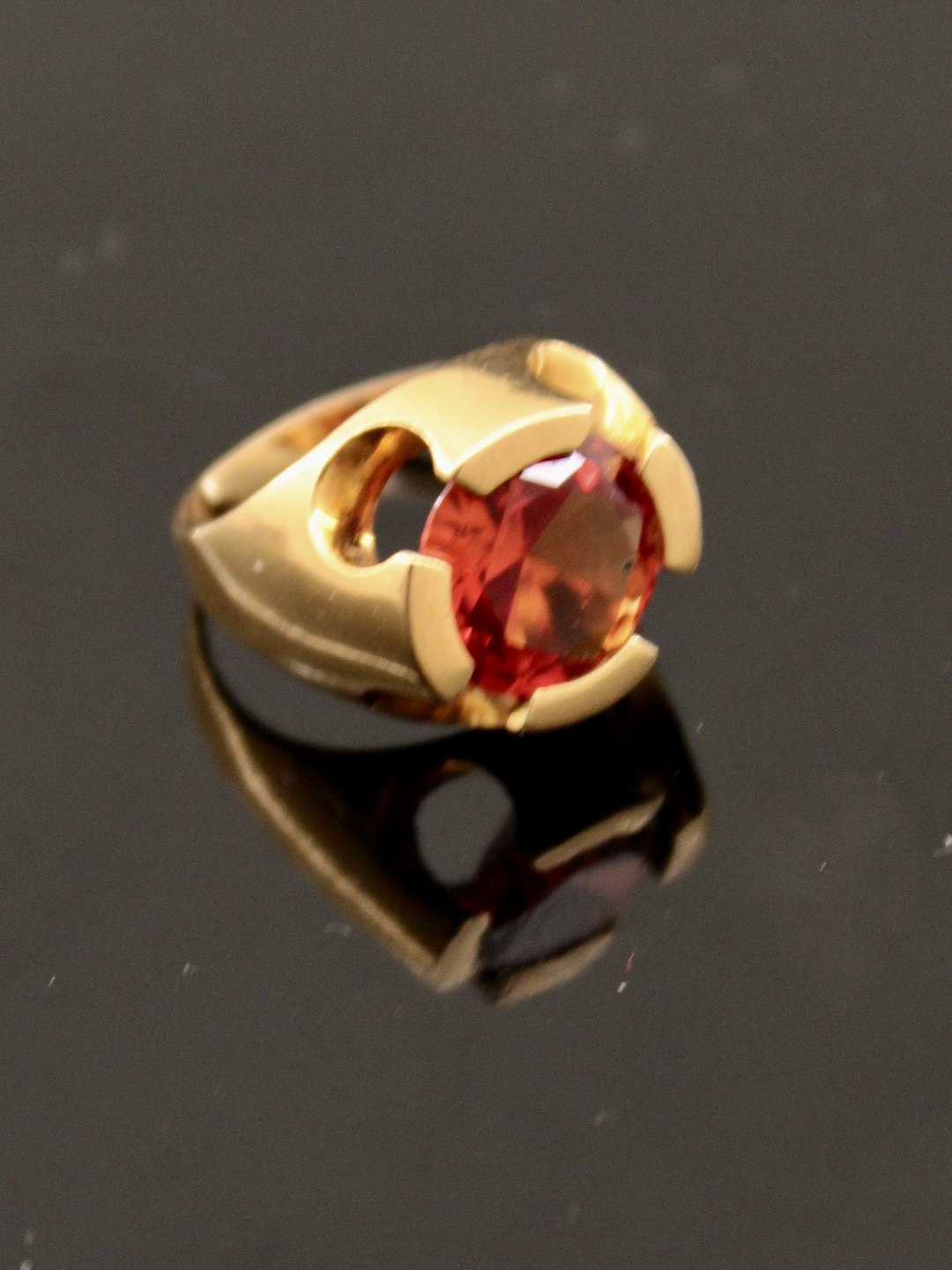 14 karat guldring størrelse 57 med topas stemplet 585 KL for guldsmed Knud Lind Brabrand emne nr. 600128