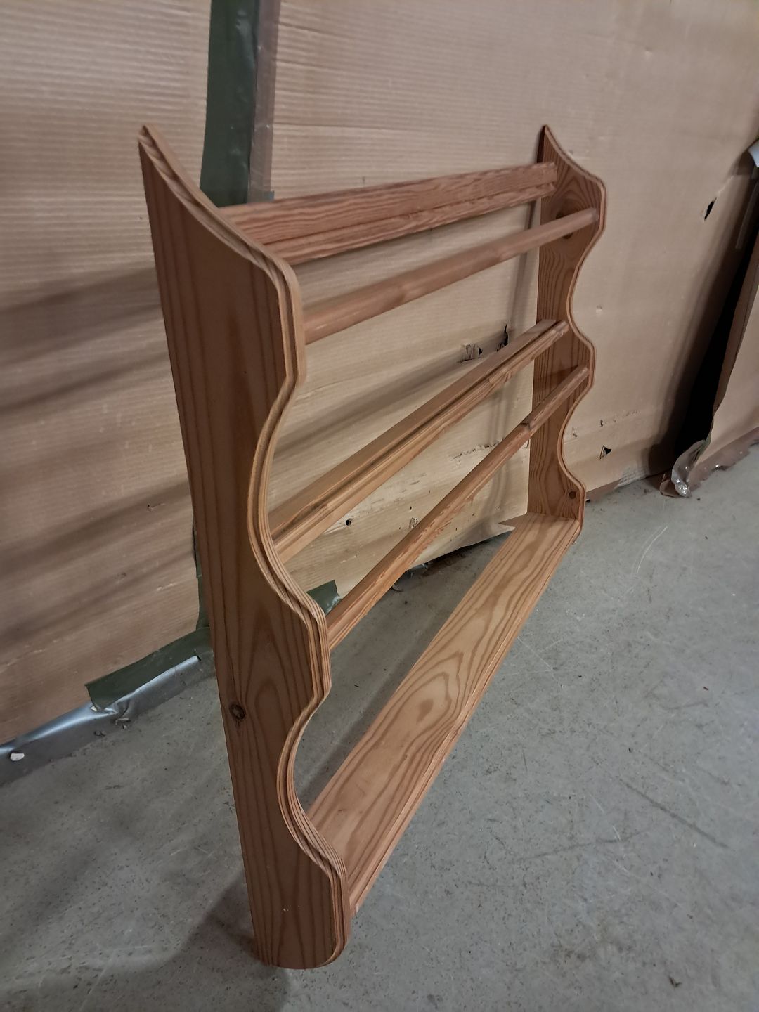 Tallerkenrække i massivt fyrretræ, fra 1990erne.