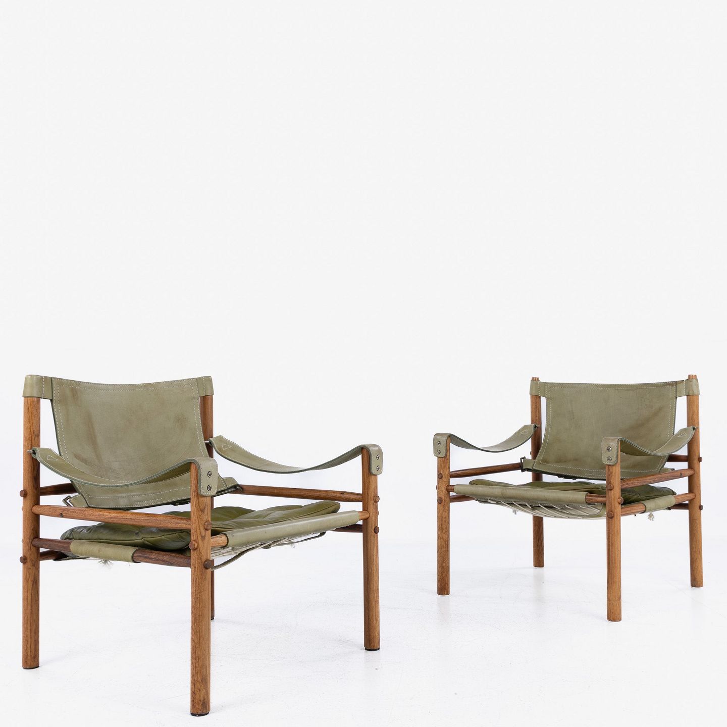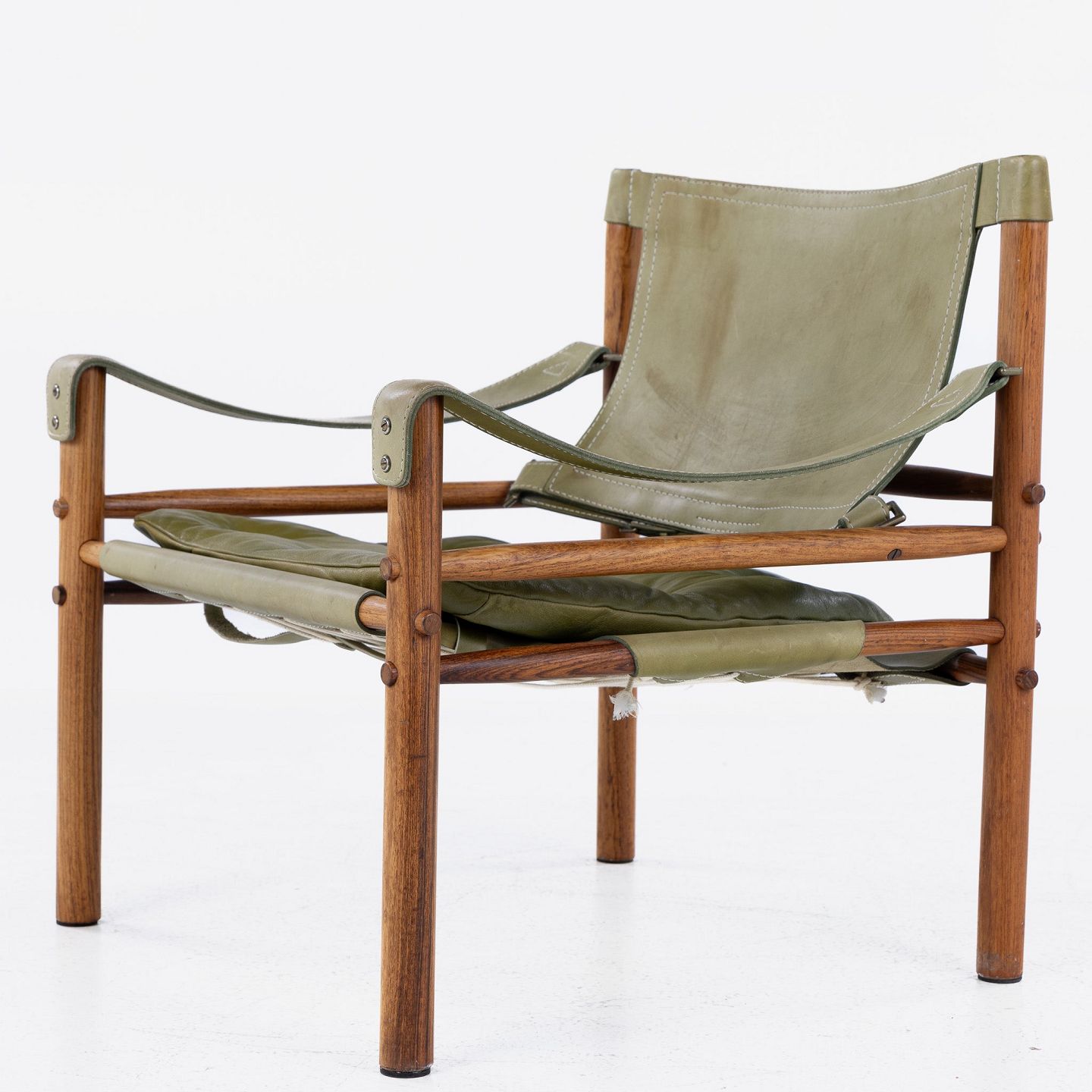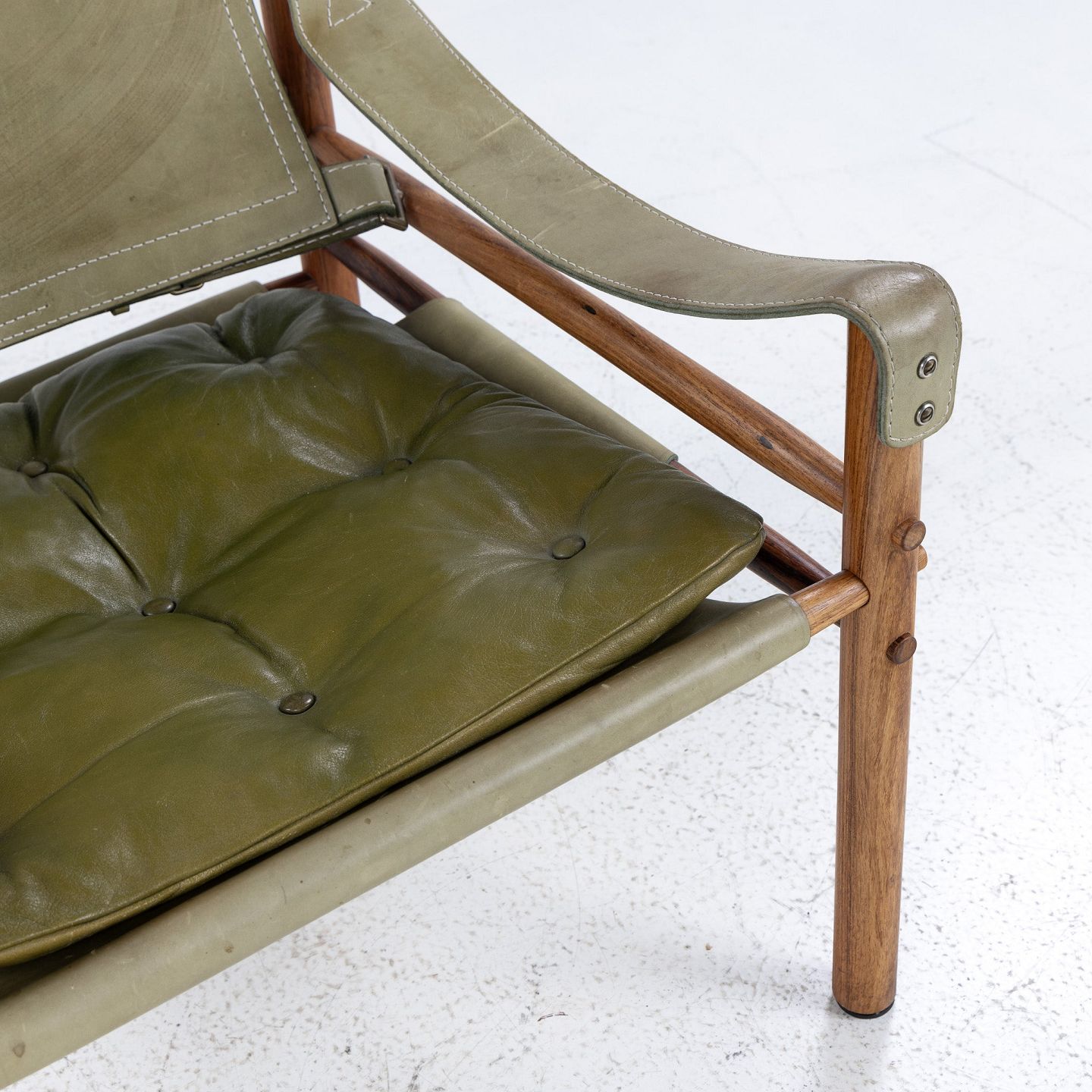 Par 'Scirocco' safari-lænestole i palisander m. grønt kernelæder.