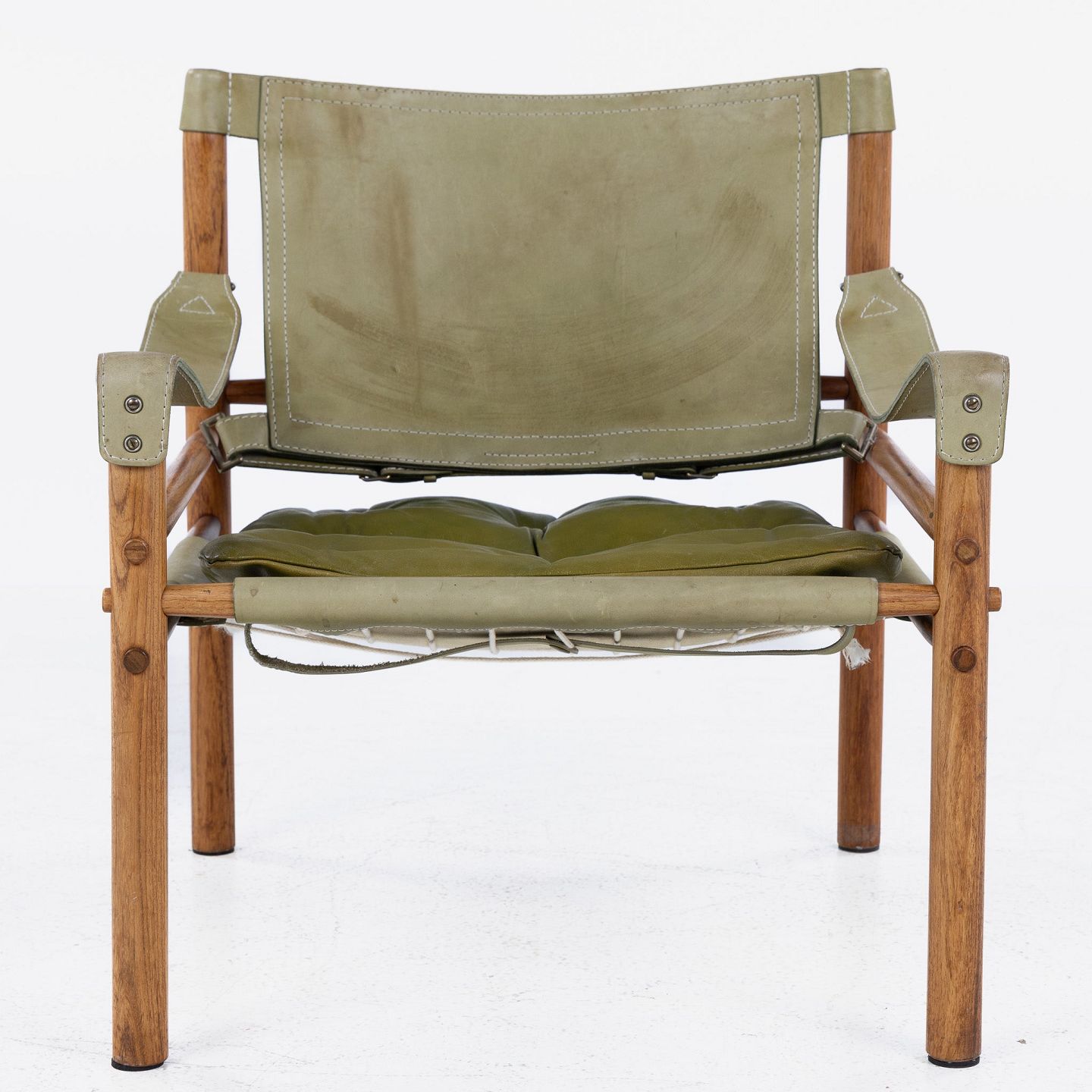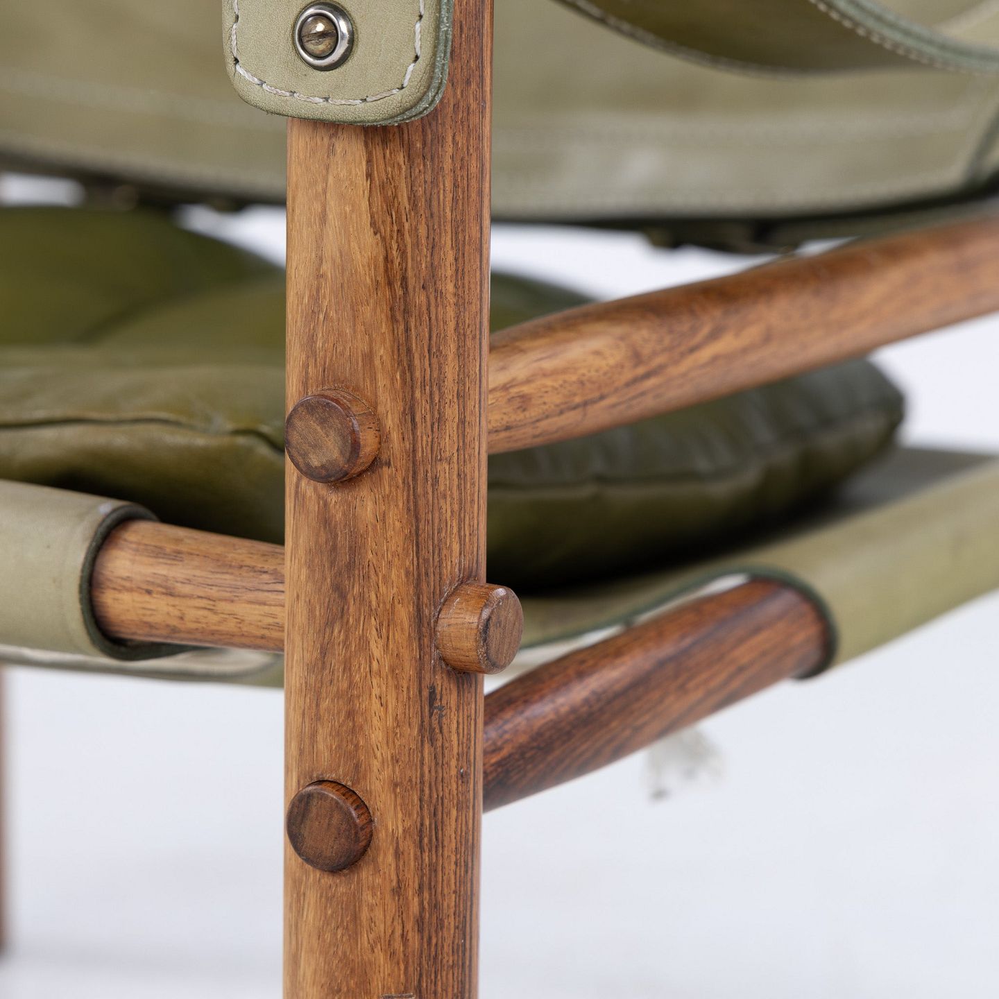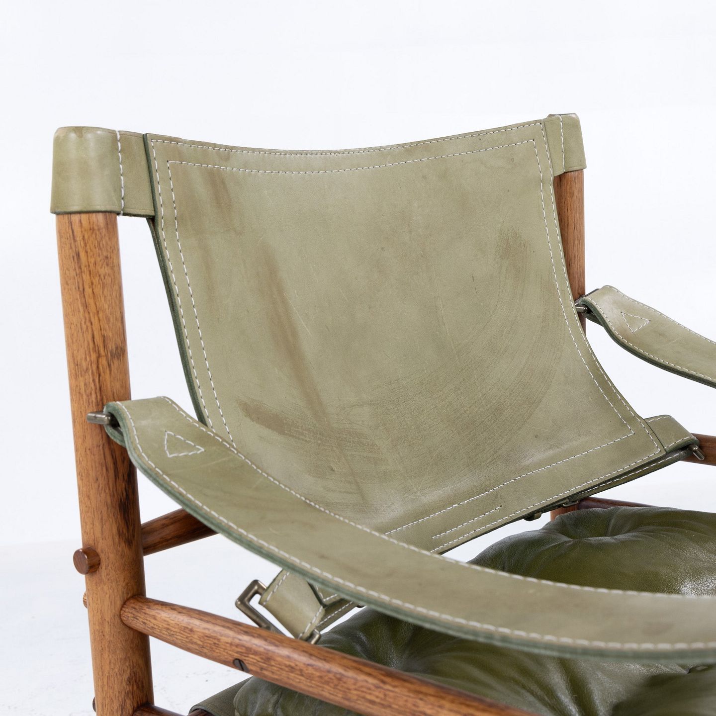 Par 'Scirocco' safari-lænestole i palisander m. grønt kernelæder.