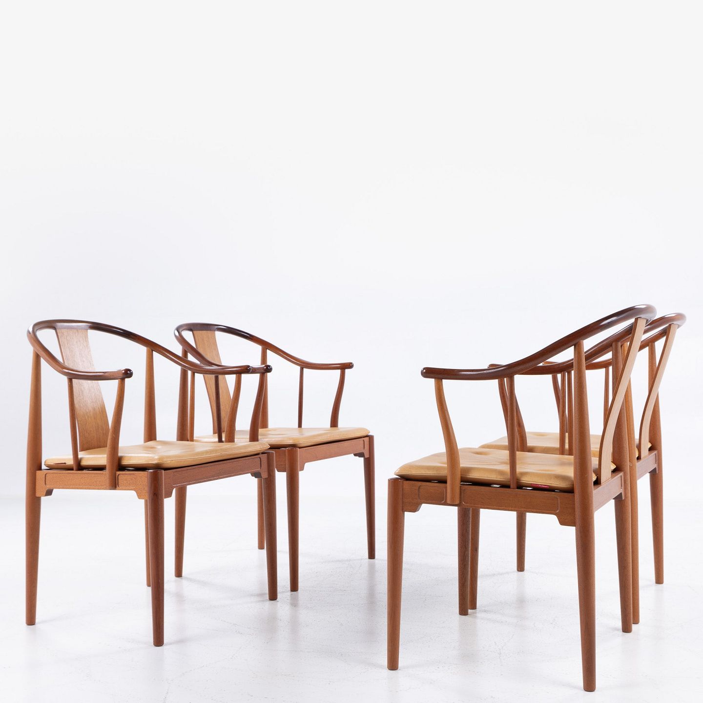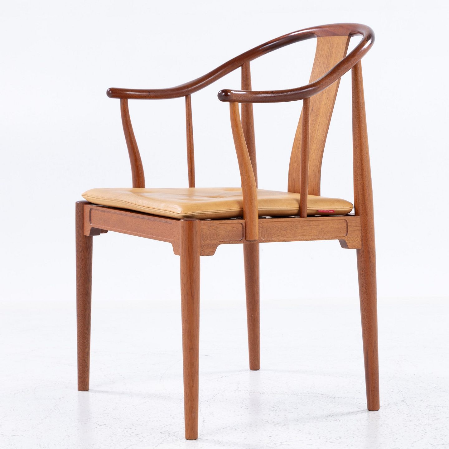 FH 4283 - Kinastol i lys mahogni m. original hynde i patineret naturlæder. Formgivet 1944.