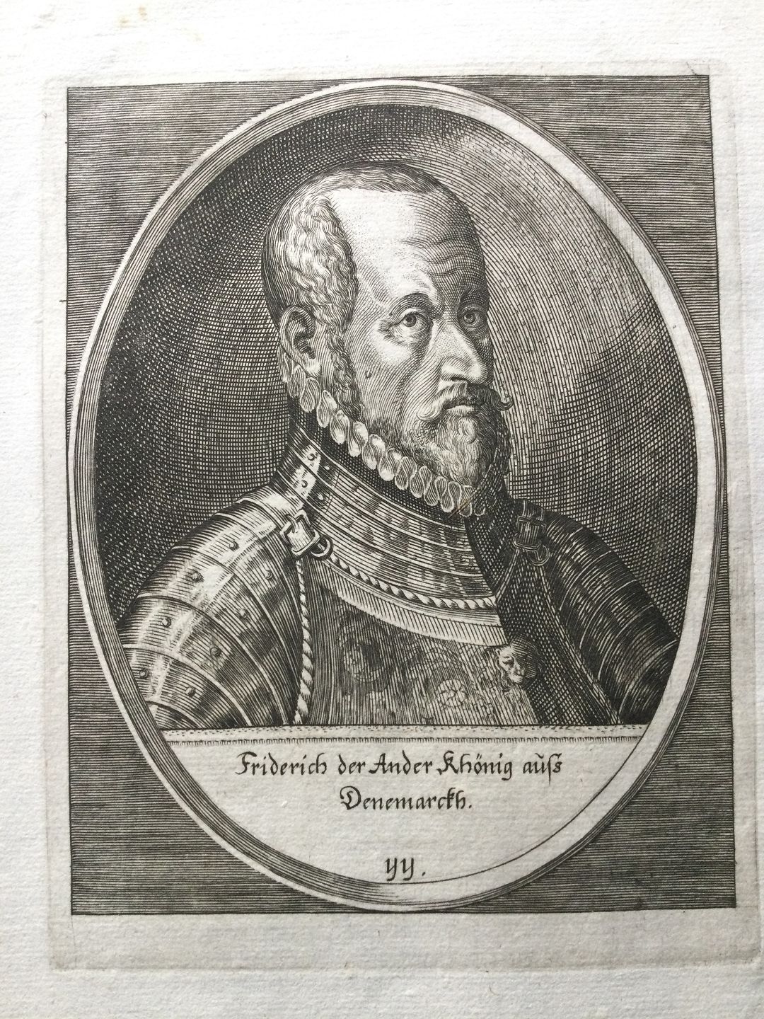 Kobberstik - Portræt af HM Kong Frederik II af Danmark og Norge.