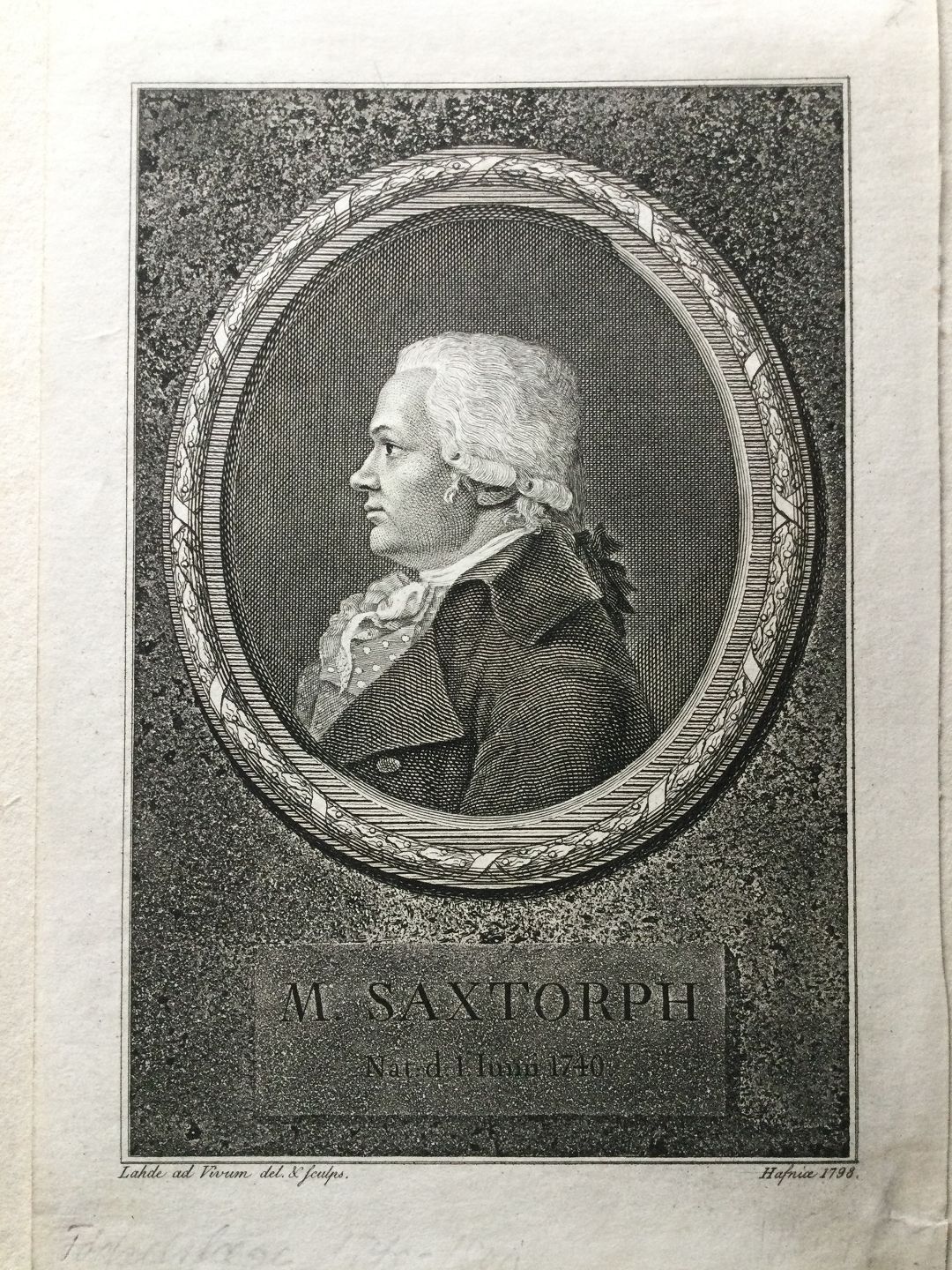 Kobberstik 1798 af G.L. Lahde - Portræt af Fødselslægen Matthias Saxtorph
