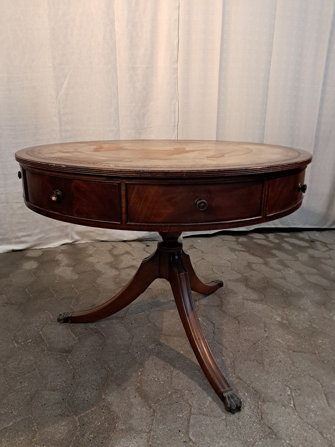 Salonbord i fineret mahogni med læder indlæg, fra 1980erne.