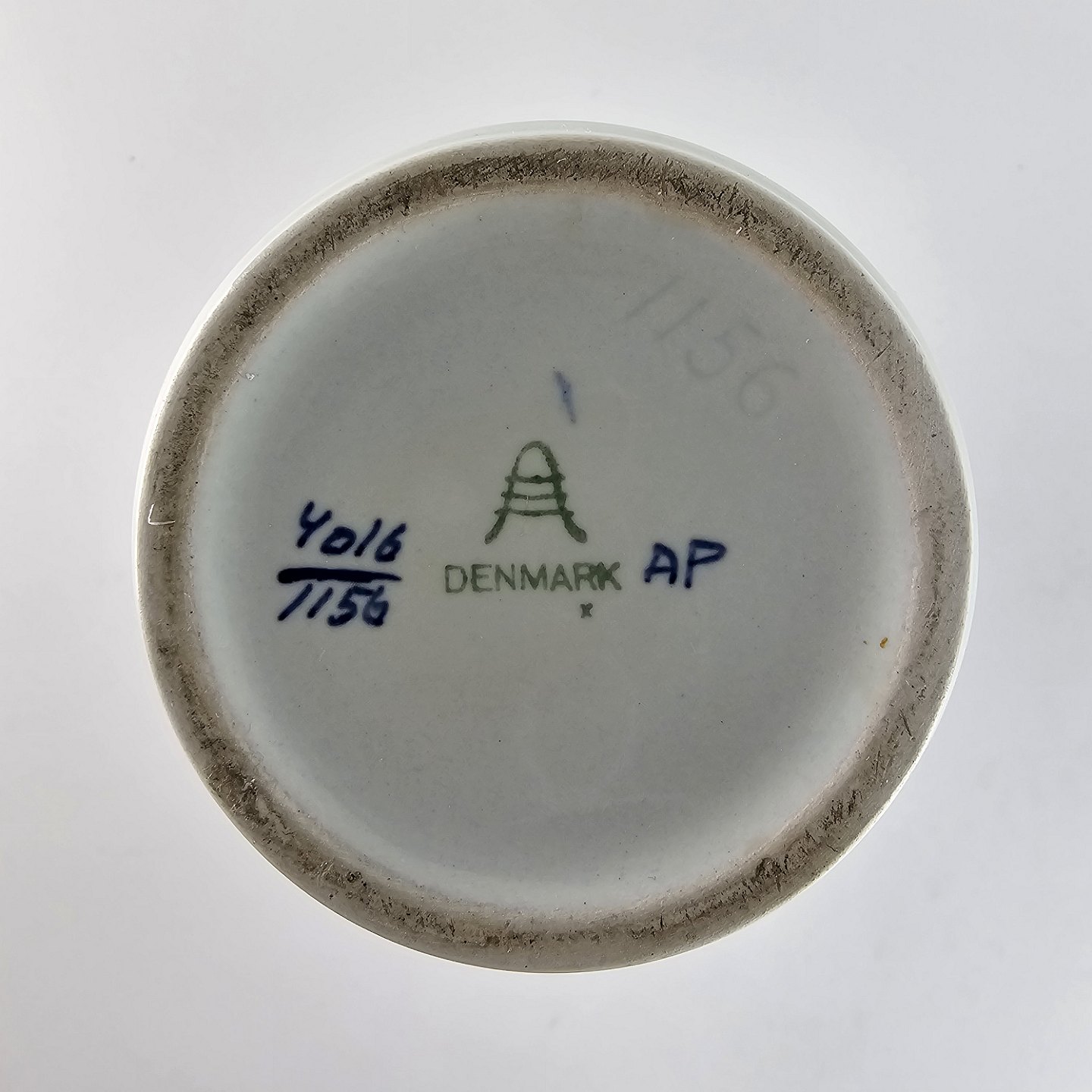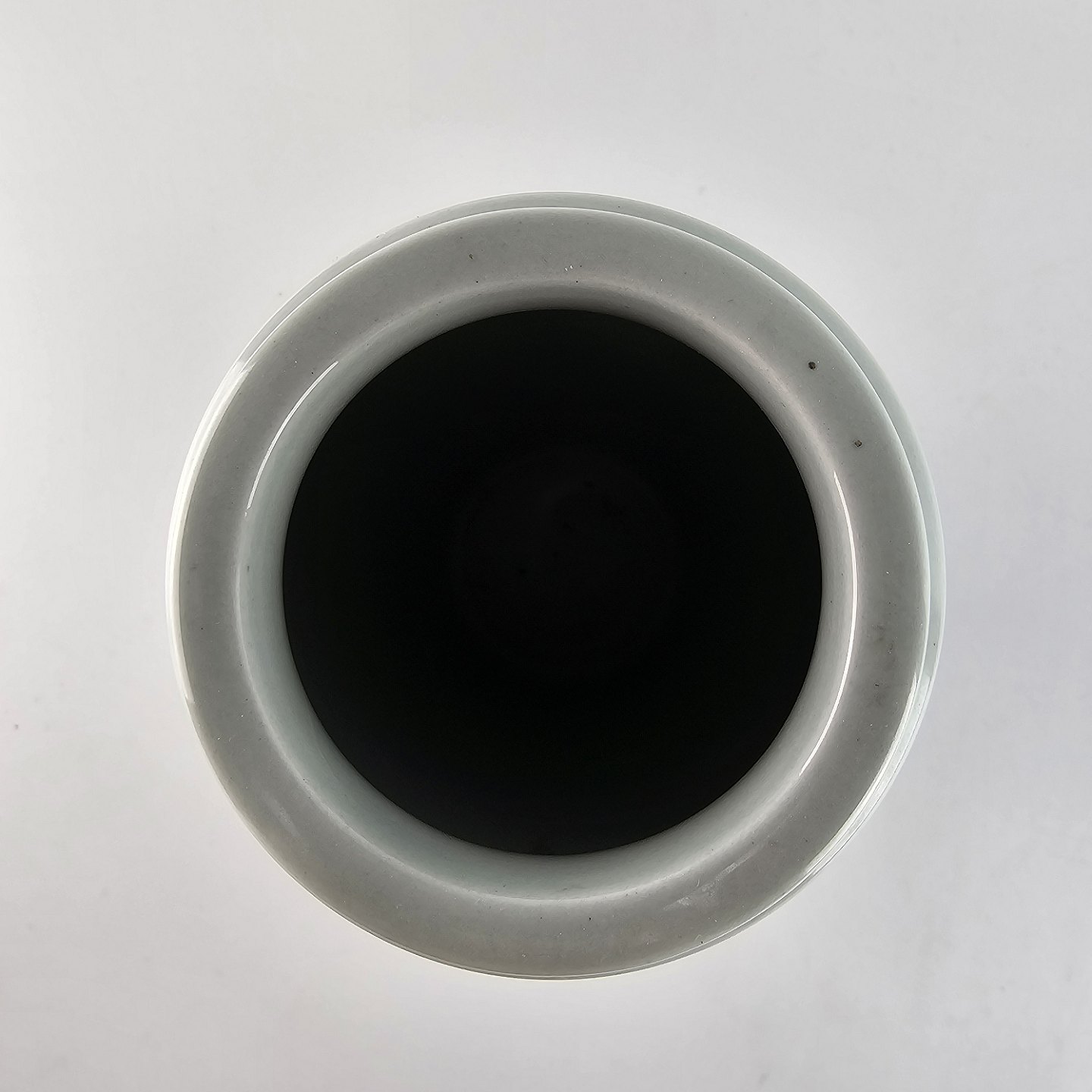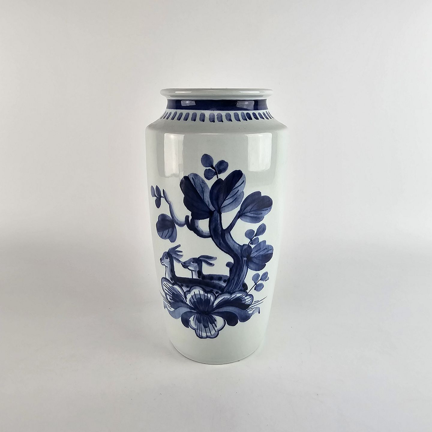 Cylinderformet tranquebar vase af fajance, dekoreret med naturmotiv med to dådyr og tårn bagpå. 4016/1156
