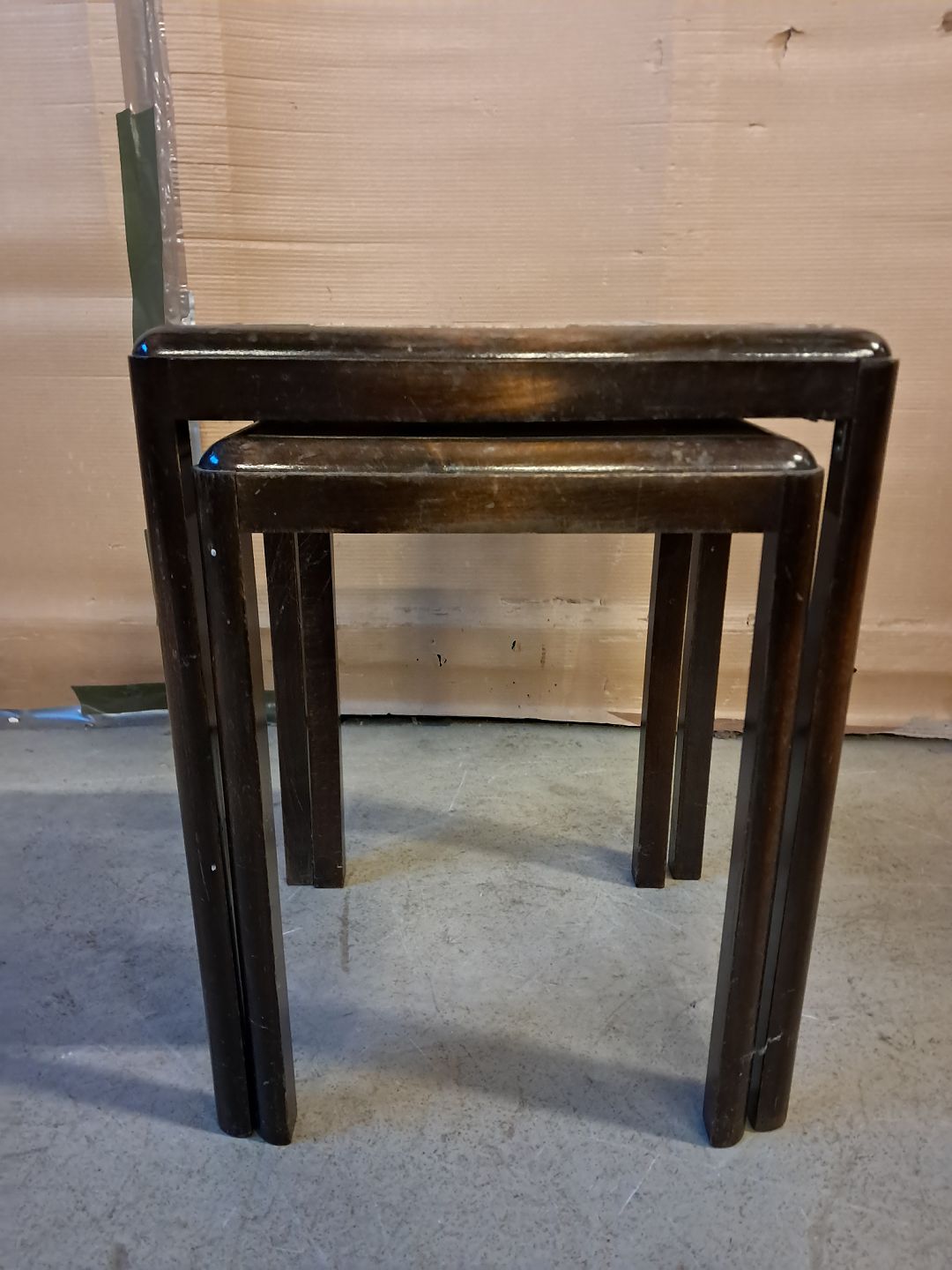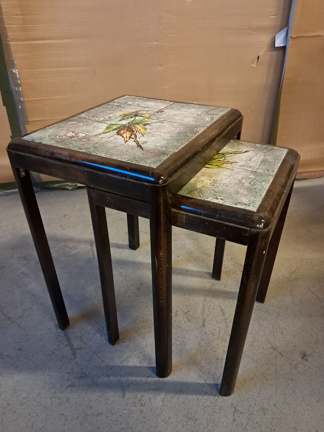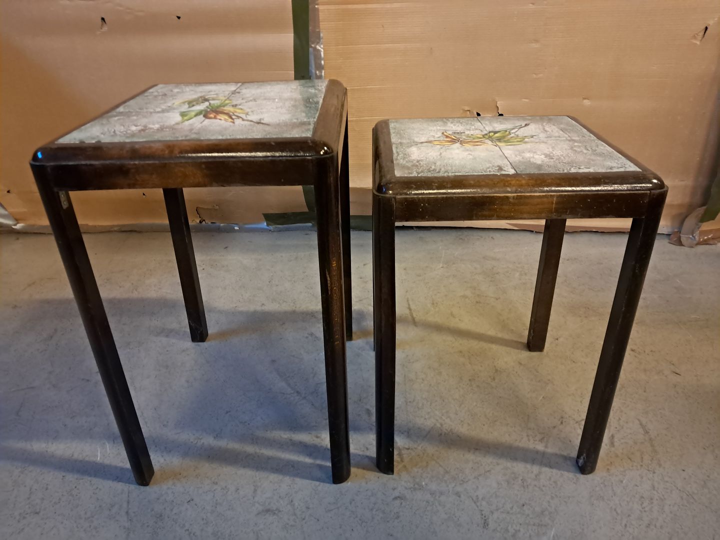 2 Indskudsborde i birketræ med kakler, fra 1930erne.