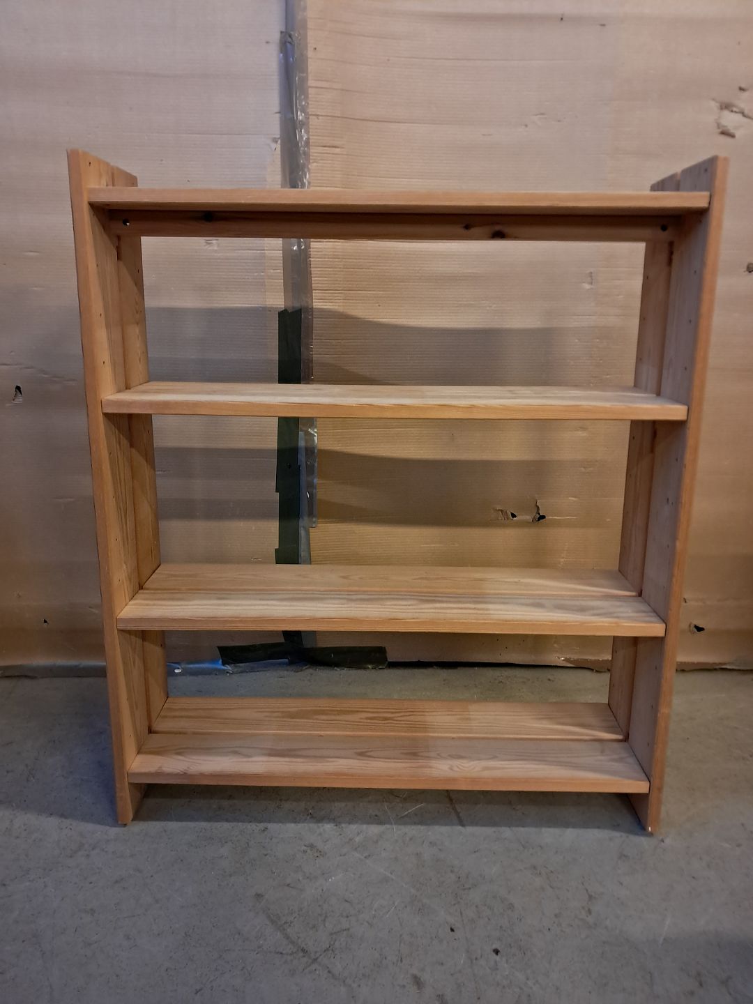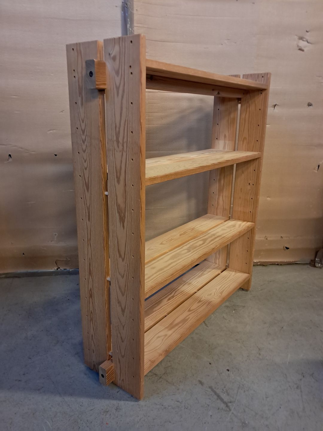 Reol i massivt fyrretræ, fra 1980erne.