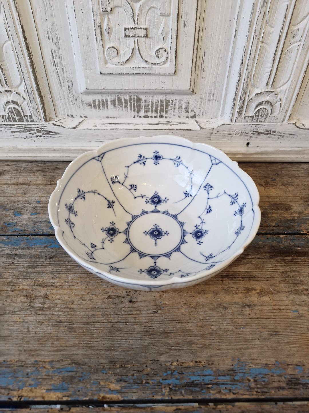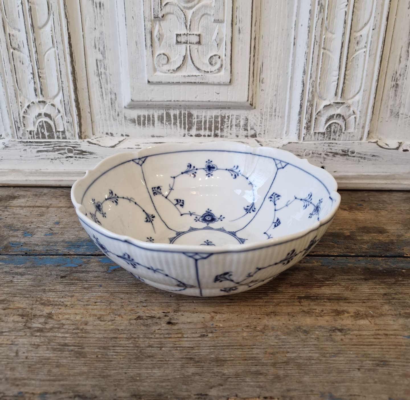 Royal Copenhagen Musselmalet riflet skål med bølget kant