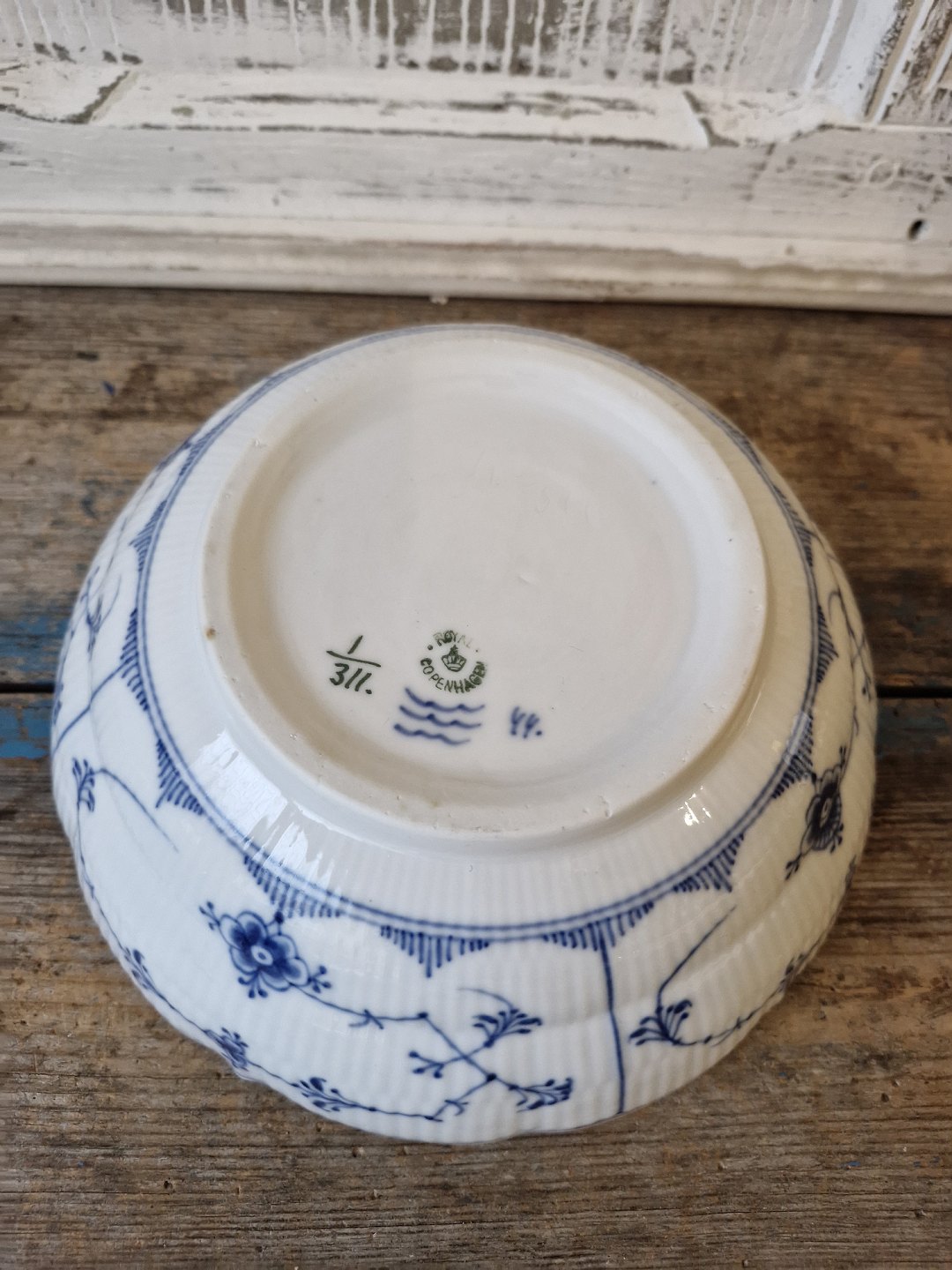 Royal Copenhagen Musselmalet riflet skål med bølget kant no. 311