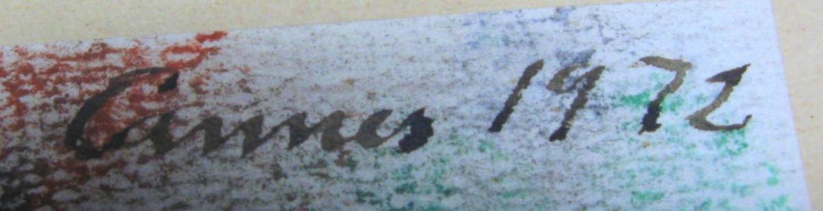 Hagedorn-Olsen, Thorvald (1902 - 1996) Danmark: Parti fra Cannes. Pastel. Signeret: Th. Hagedorn-Olsen 1972. 23,5 x 31,5 cm. I guldramme. Med dedikation: 10/7 - 73 Hjertelig tillykke Deres hengivne Dagny og Th. Hagedorn-Olsen